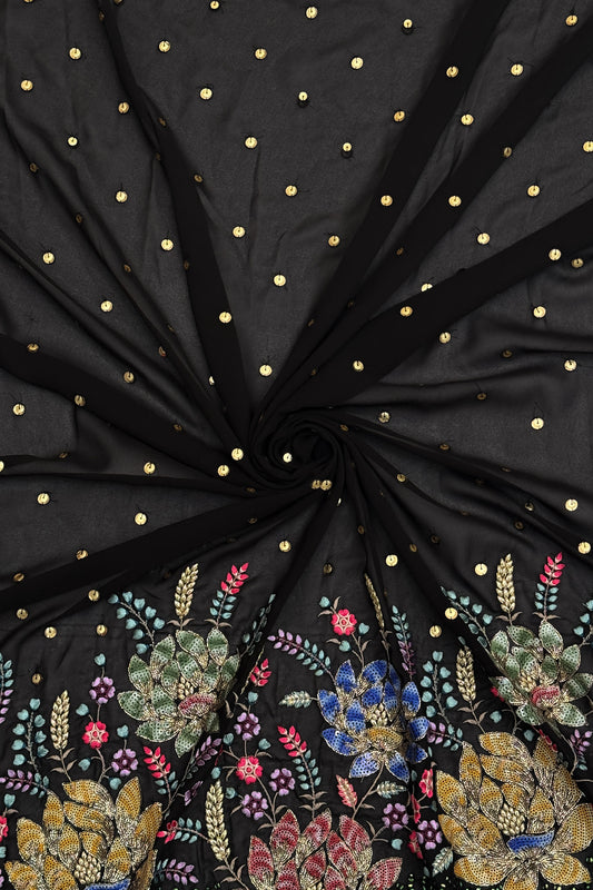 Noir Regal Bloom Sequin Embroidered Georgette Fabric