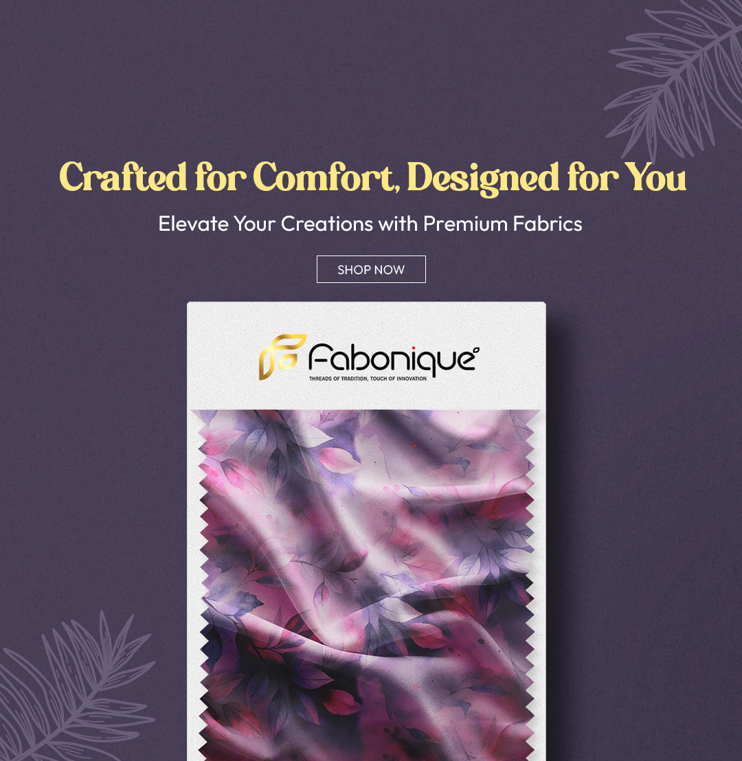 Fabonique is your gateway to an exquisite range of fabrics that blend tradition with modernity. From the timeless elegance of Pure Banarasi and Chanderi Silk to the contemporary charm of Digital Prints and Dyed Polyester, our collection caters to every creative vision.