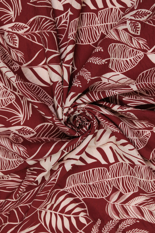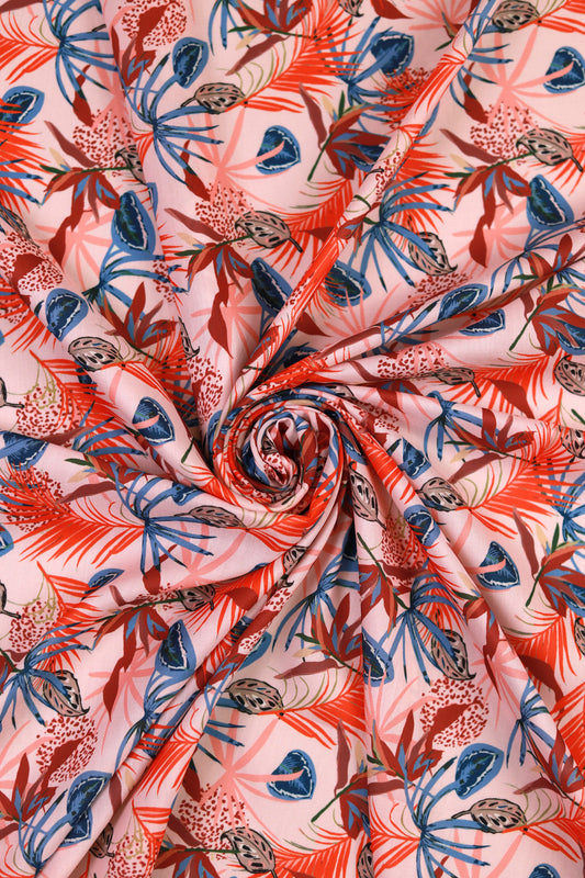 Autumn Fern Tropical Leaf Viscose Blend Fabric