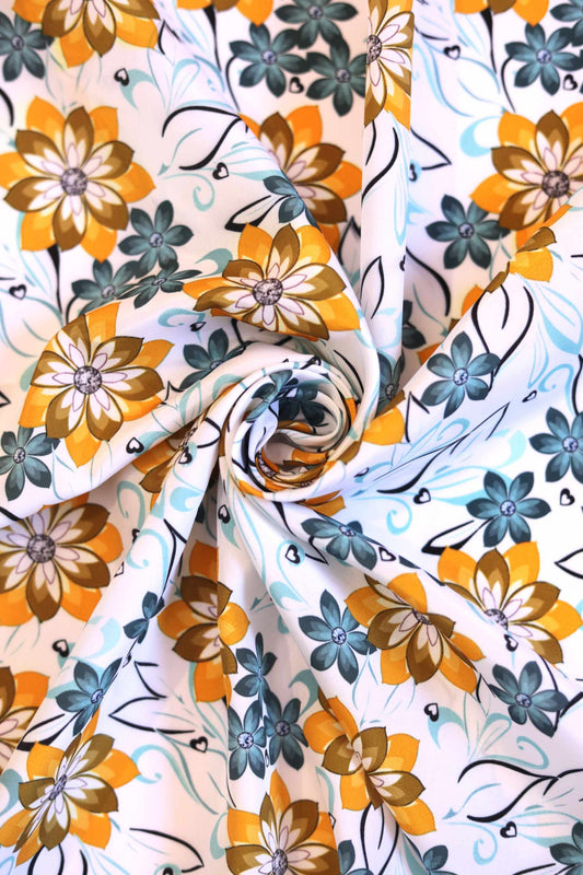 Azure Bloom Yellow Linen Floral Printed Fabric
