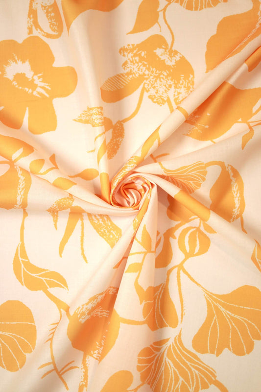 Amber Leaf Bamboo Print Viscose Blend Fabric