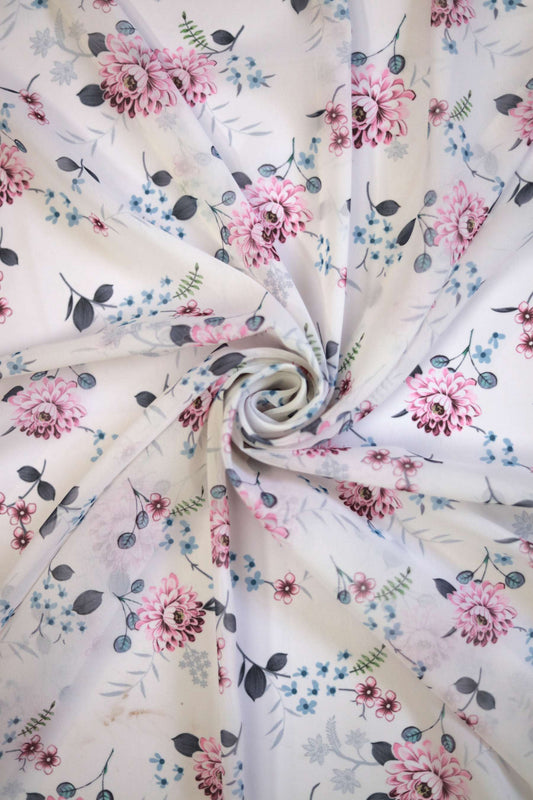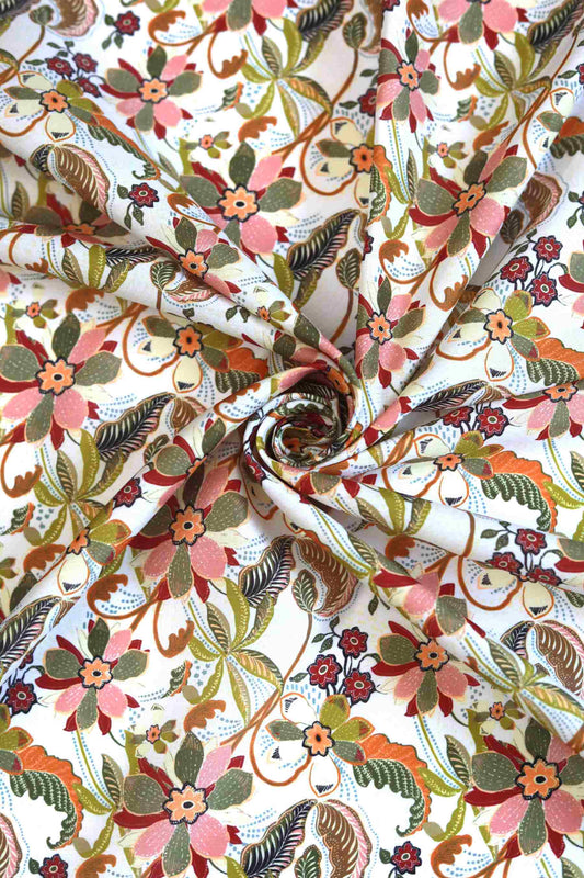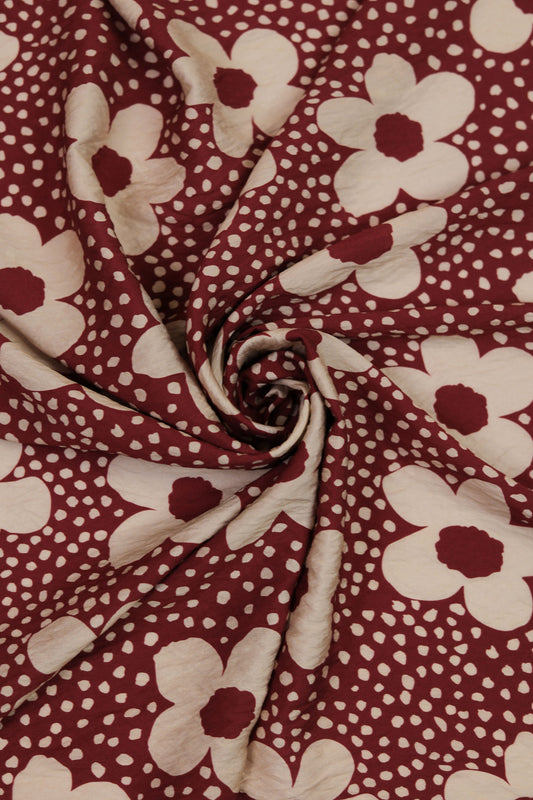 Blush Blossom Floral Dot Viscose Blend Fabric