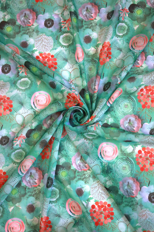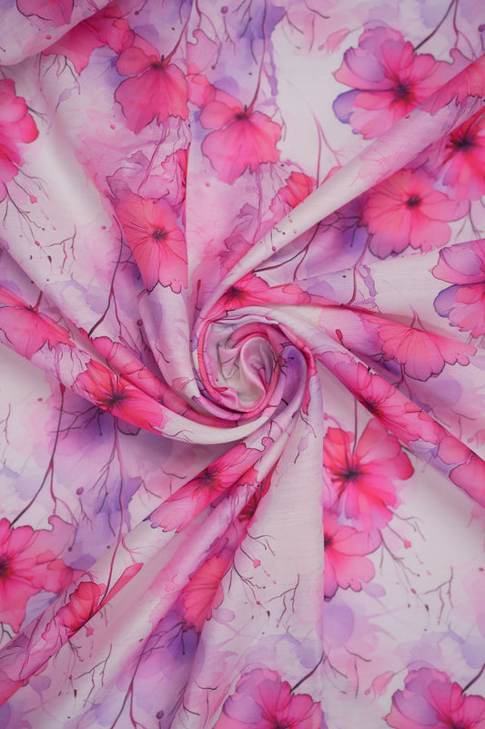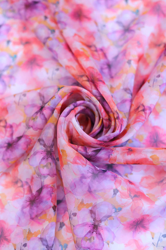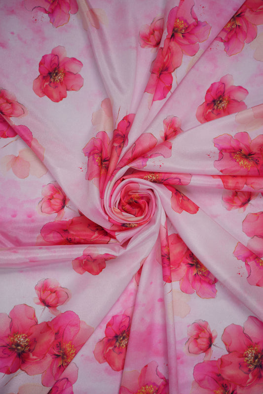 Blush Bloom Hand-Painted Floral Silk Crepe Fabric