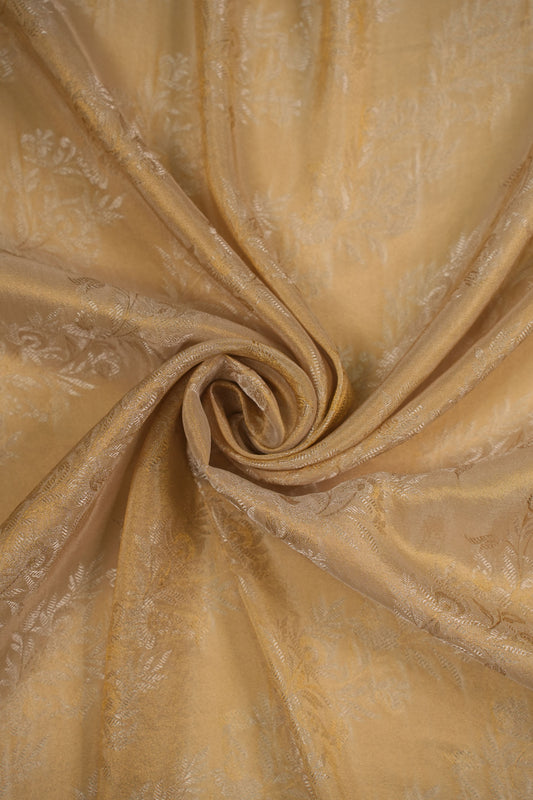 Golden Woven Pure Tanchoi Silk Floral Brocade Fabric