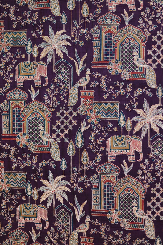 Purple Majestic Meadow Viscose Chinon Embroidered Fabric