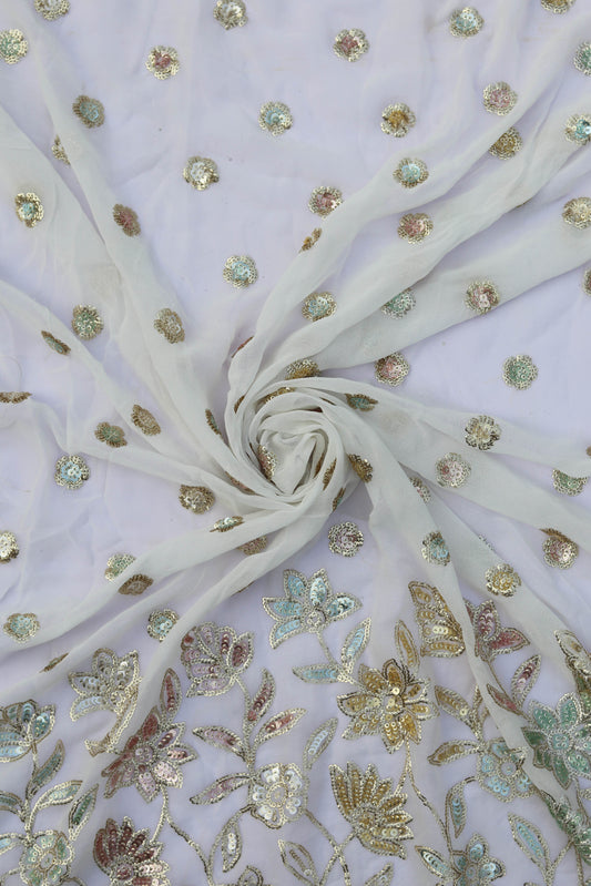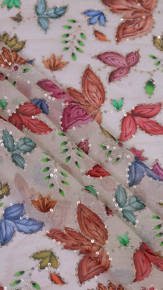 Pastel Bloom Sequin Embroidered Georgette Fabric