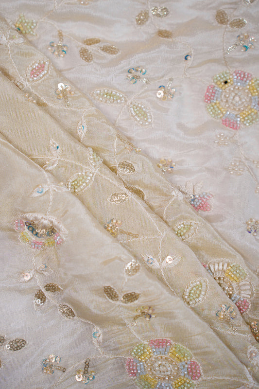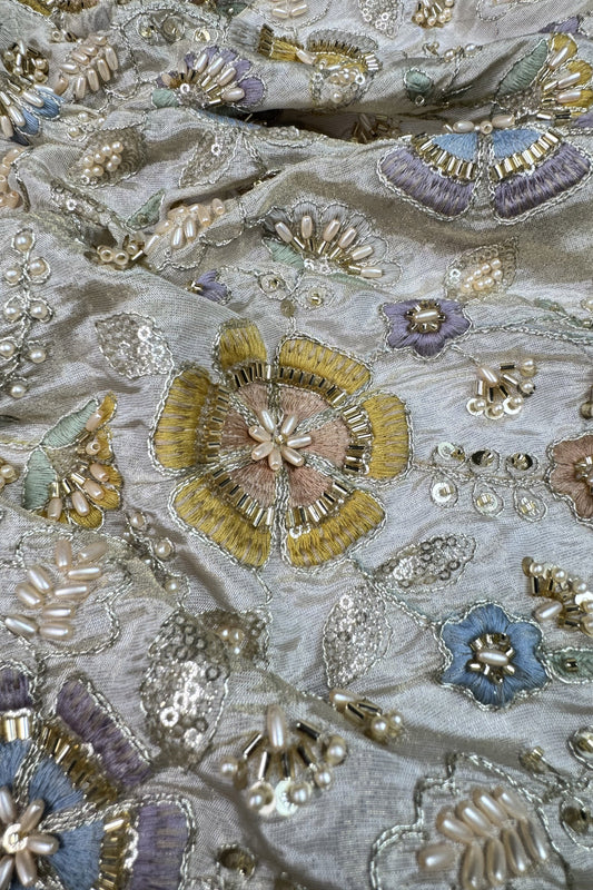 Pastel Floral Embroidered Sequin Tissue Fabric
