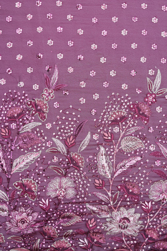 Plum Elegance Heavy Floral Sequin Embroidered Fabric