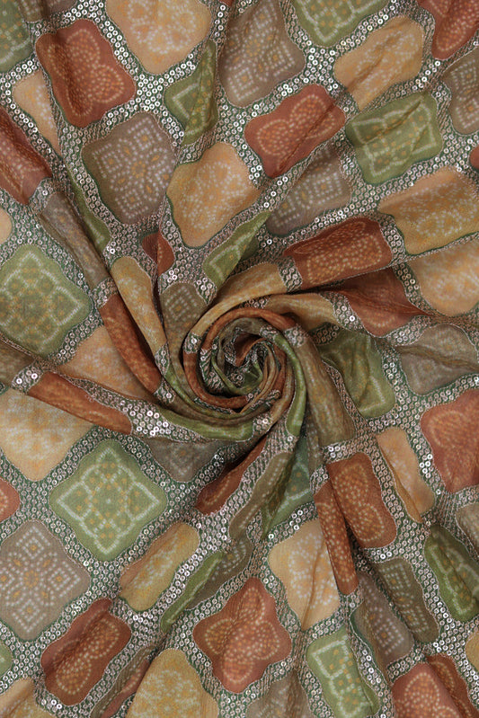 Regal Bloom Stripes Multicolour Floral Sequin Viscose Georgette Fabric