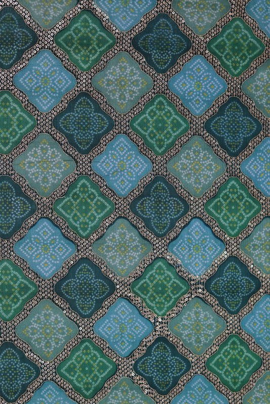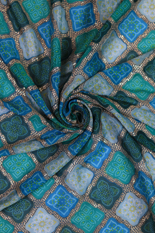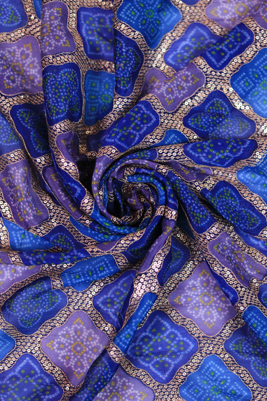 Bold Bloom Sequin Embroidered Blue Chinon Fabric