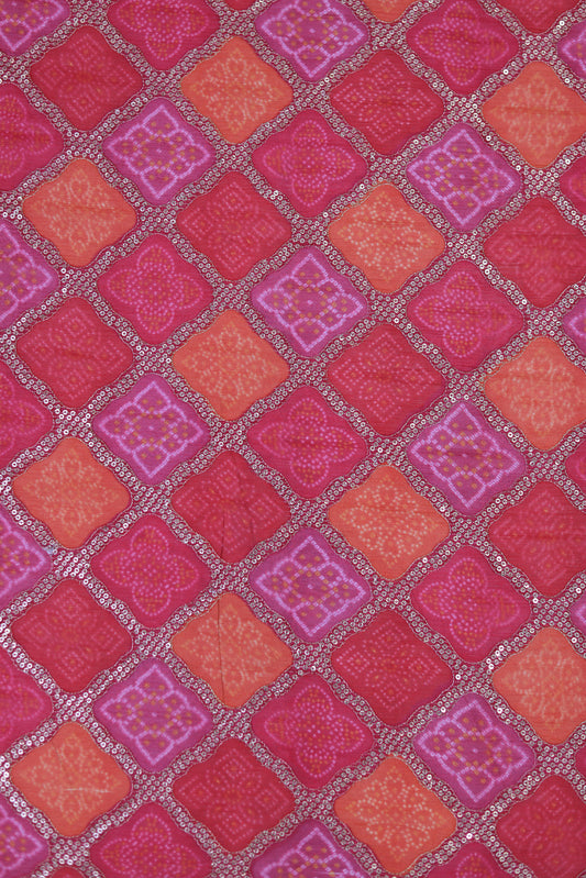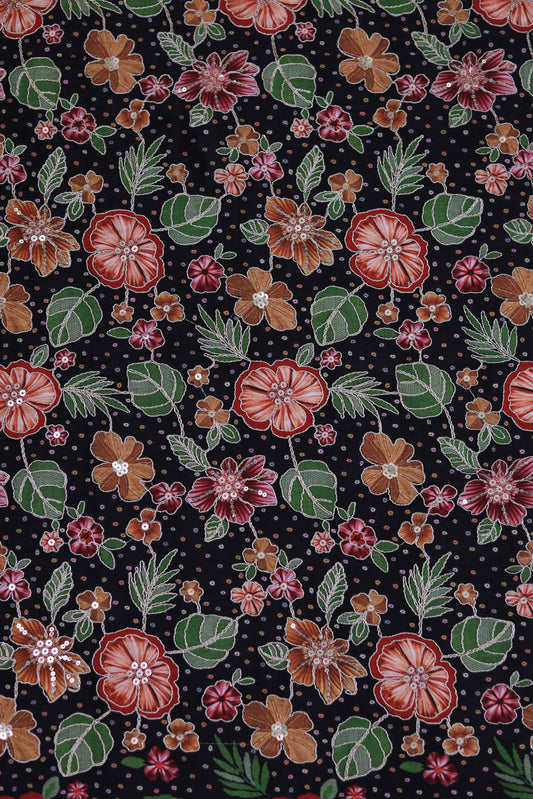Bold Bloom Sequin Embroidered Red Chinon Fabric