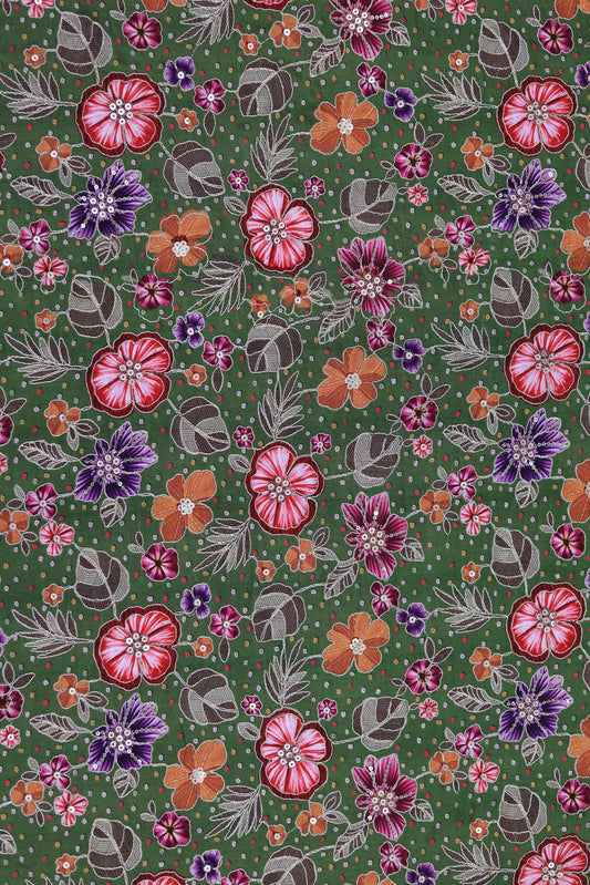 Green Orchid Luxe Embroidered Viscose Dola Fabric