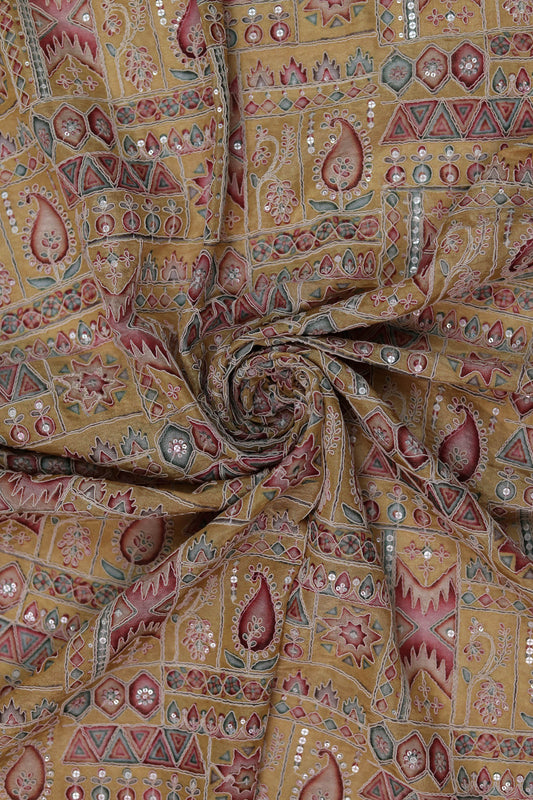 Yellow Heritage Mosaic Embroidered Patchwork Fabric