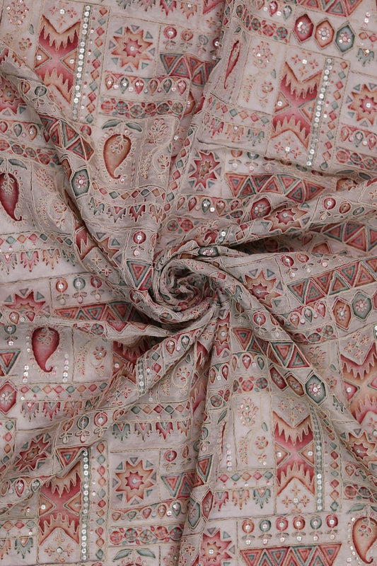 White Heritage Mosaic Embroidered Patchwork Fabric