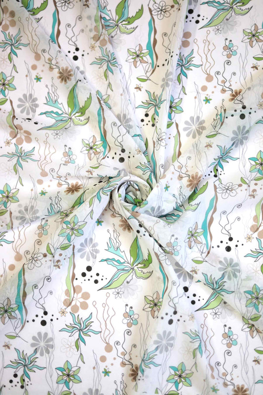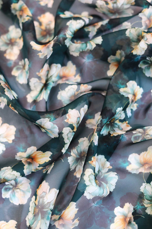 Rainbow Bloom Multi-Color Floral Silk Crepe Fabric