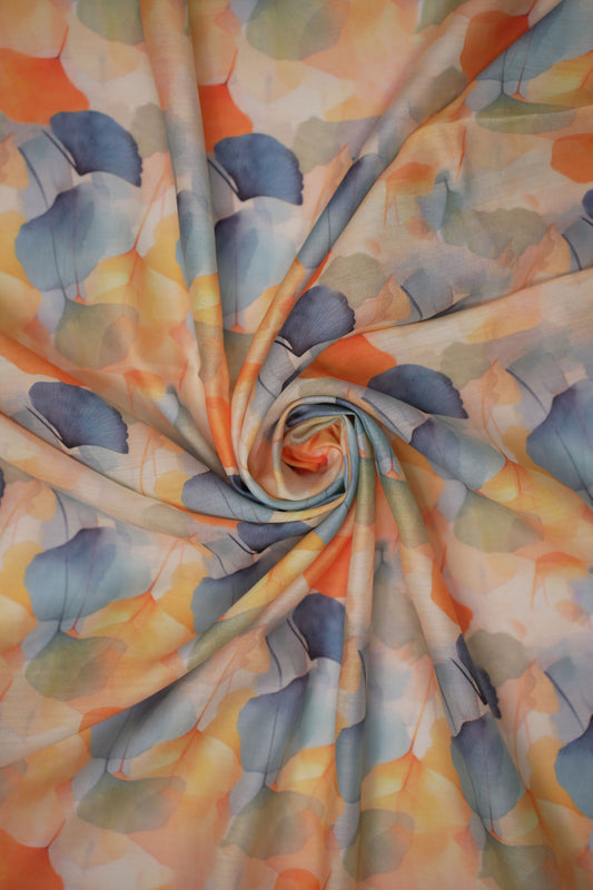 Mystic Ginkgo Leaf Print Chanderi Fabric