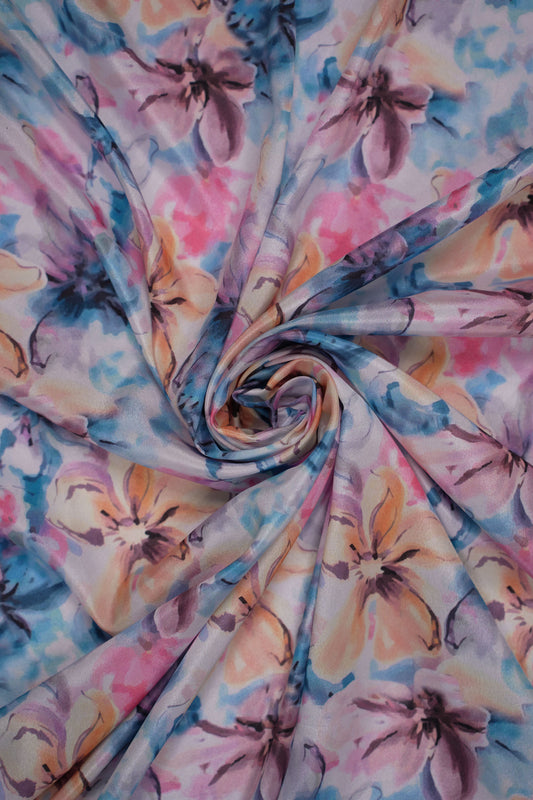 Watercolour Whisper Artistic Floral Silk Crepe Fabric