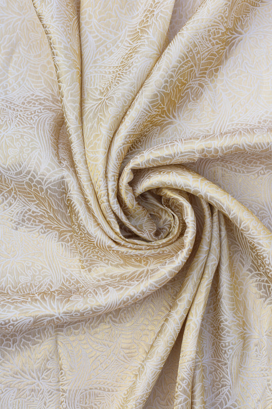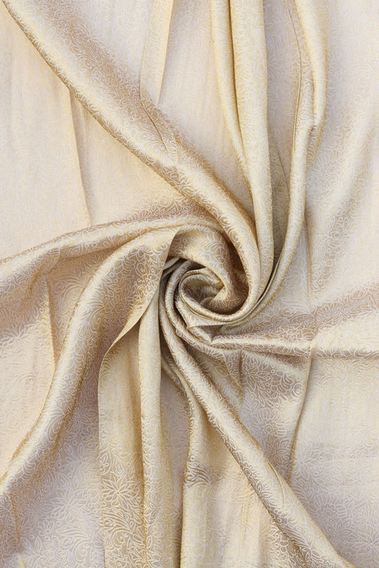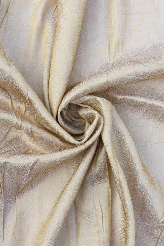 Ivory Gold Banarasi Brocade Fabric with Floral Weave