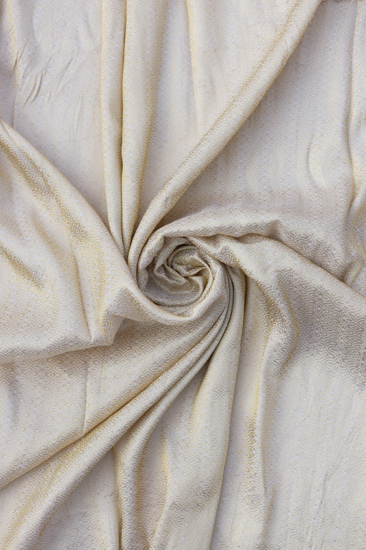 Ivory Banarasi Brocade Fabric with Floral Geometric Weave
