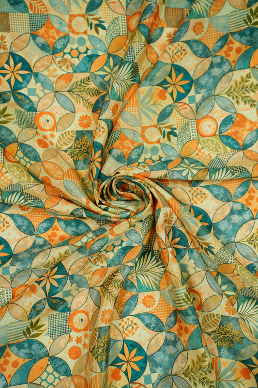 GeoFlora Harmony Muslin Geometric Floral Printed Fabric