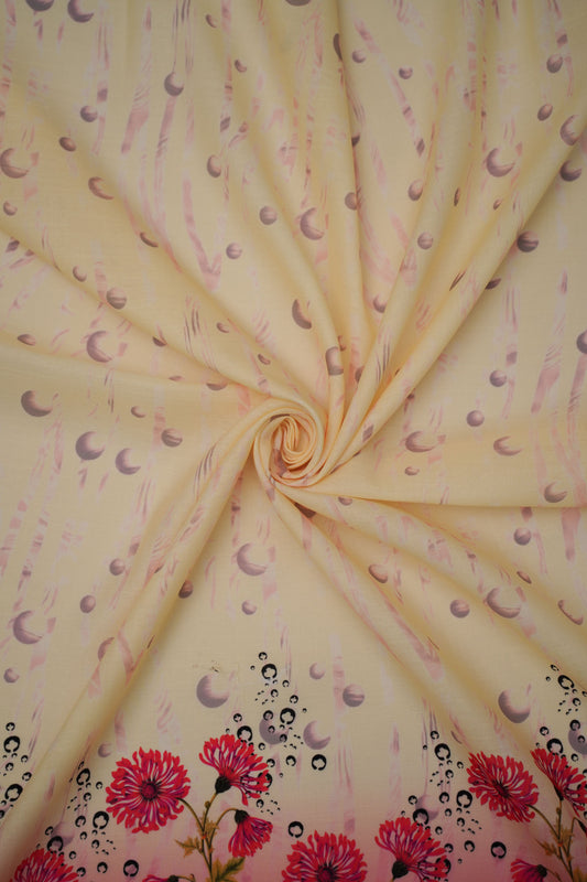 Azure Bloom Yellow Linen Floral Printed Fabric