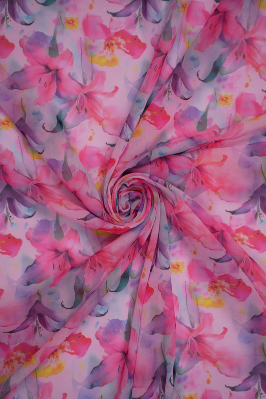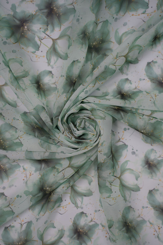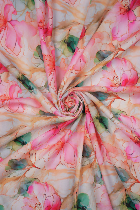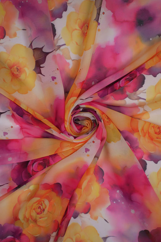 Watercolour Whisper Artistic Floral Silk Crepe Fabric