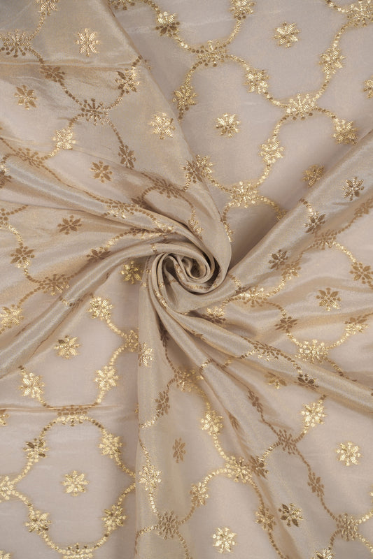 Champagne Gold Floral Hand-Embroidered Tissue Fabric with Sequins & Beads