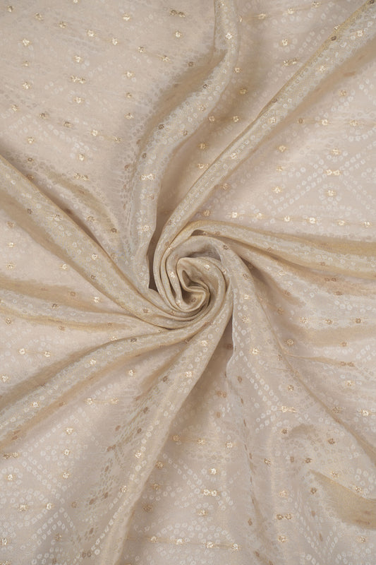 Ivory Floral Hand-Embroidered Tissue Fabric with Sequins & Beads