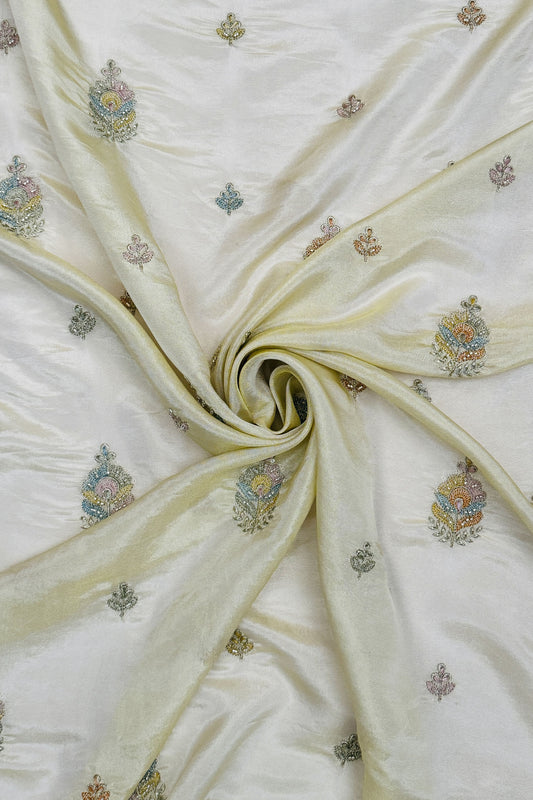 Champagne Gold Floral Beaded & Sequin Embroidered Tissue Fabric