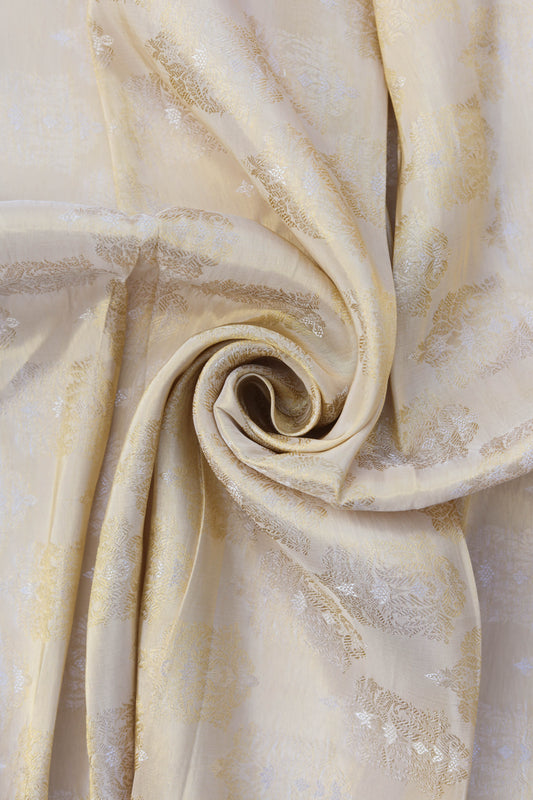 Pure Tanchoi Silk Brocade Fabric with Intricate Golden Floral Patterns