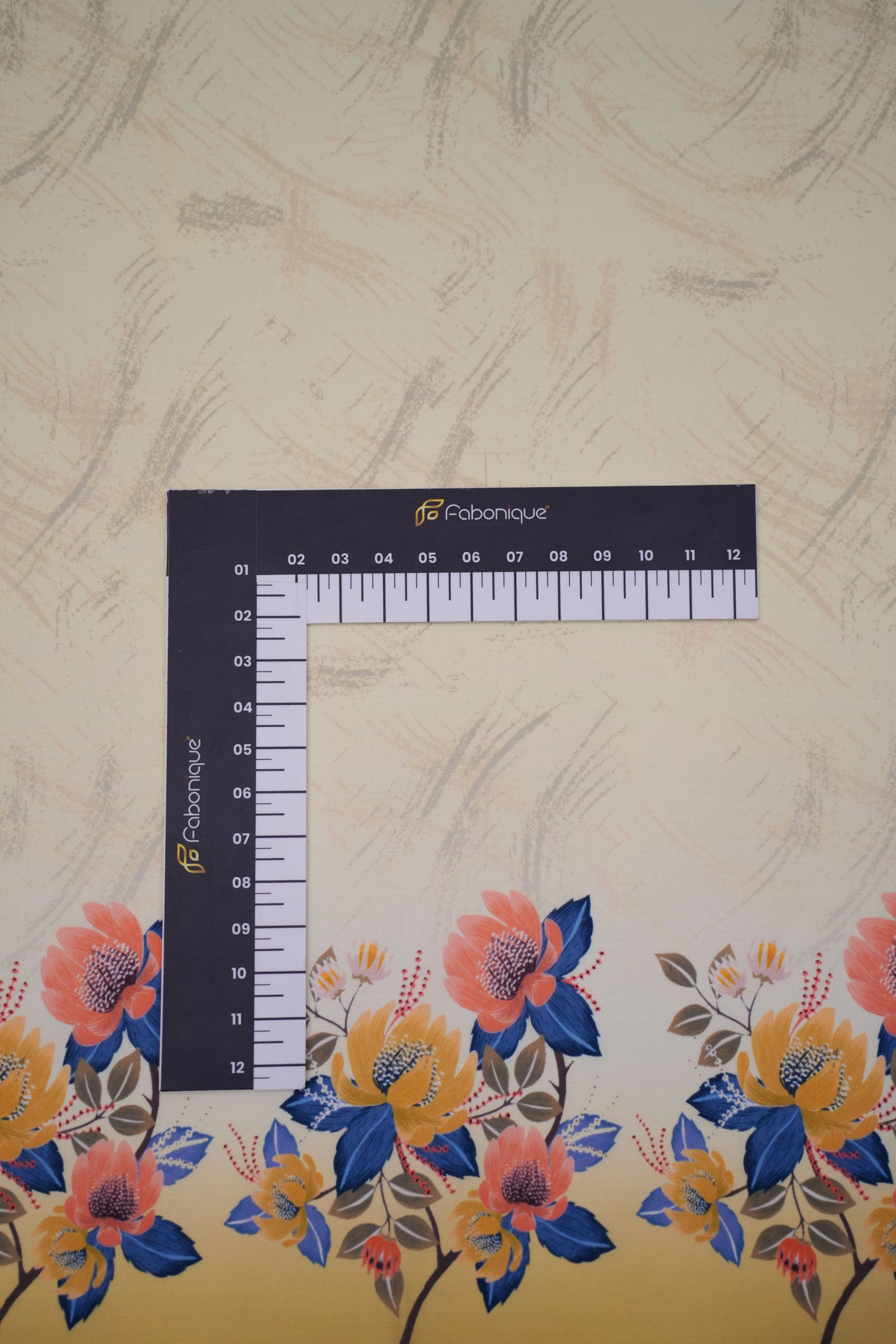 Azure Bloom Yellow Linen Floral Printed Fabric non-dyeable