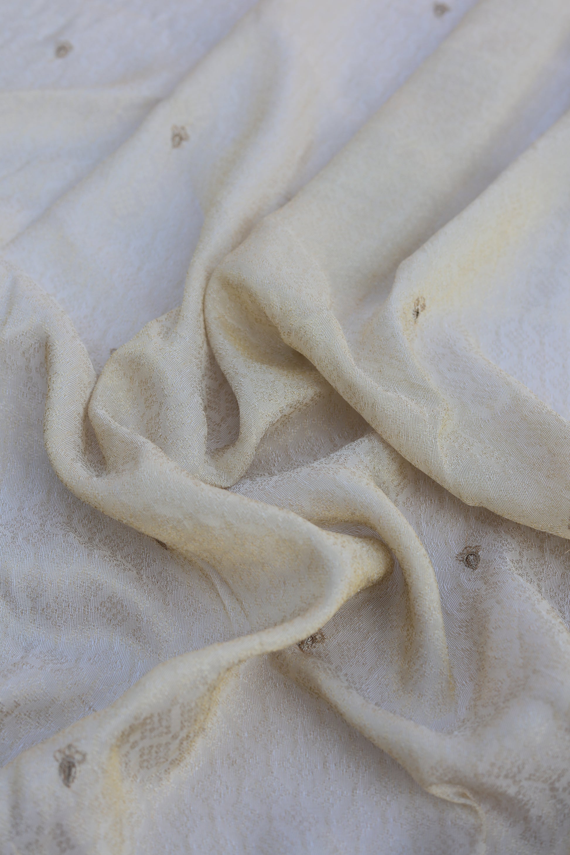 Pure Banarasi Tissue Brocade Fabric with Diamond Weave Mirror Embellishments and Embroidered Border dyeable