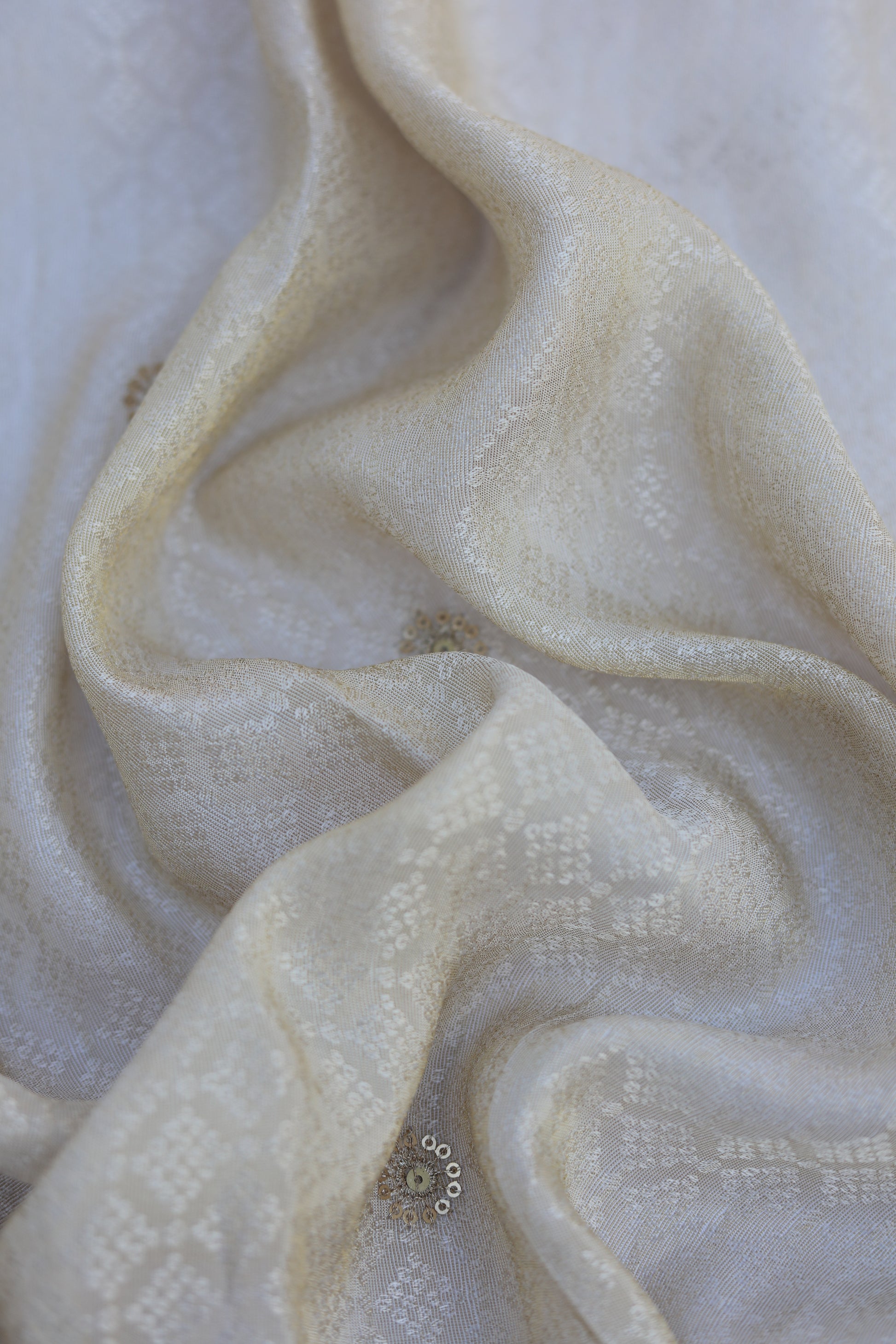 Banarasi Tissue Brocade Fabric with Floral Embroidery and Colorful Border dyeable