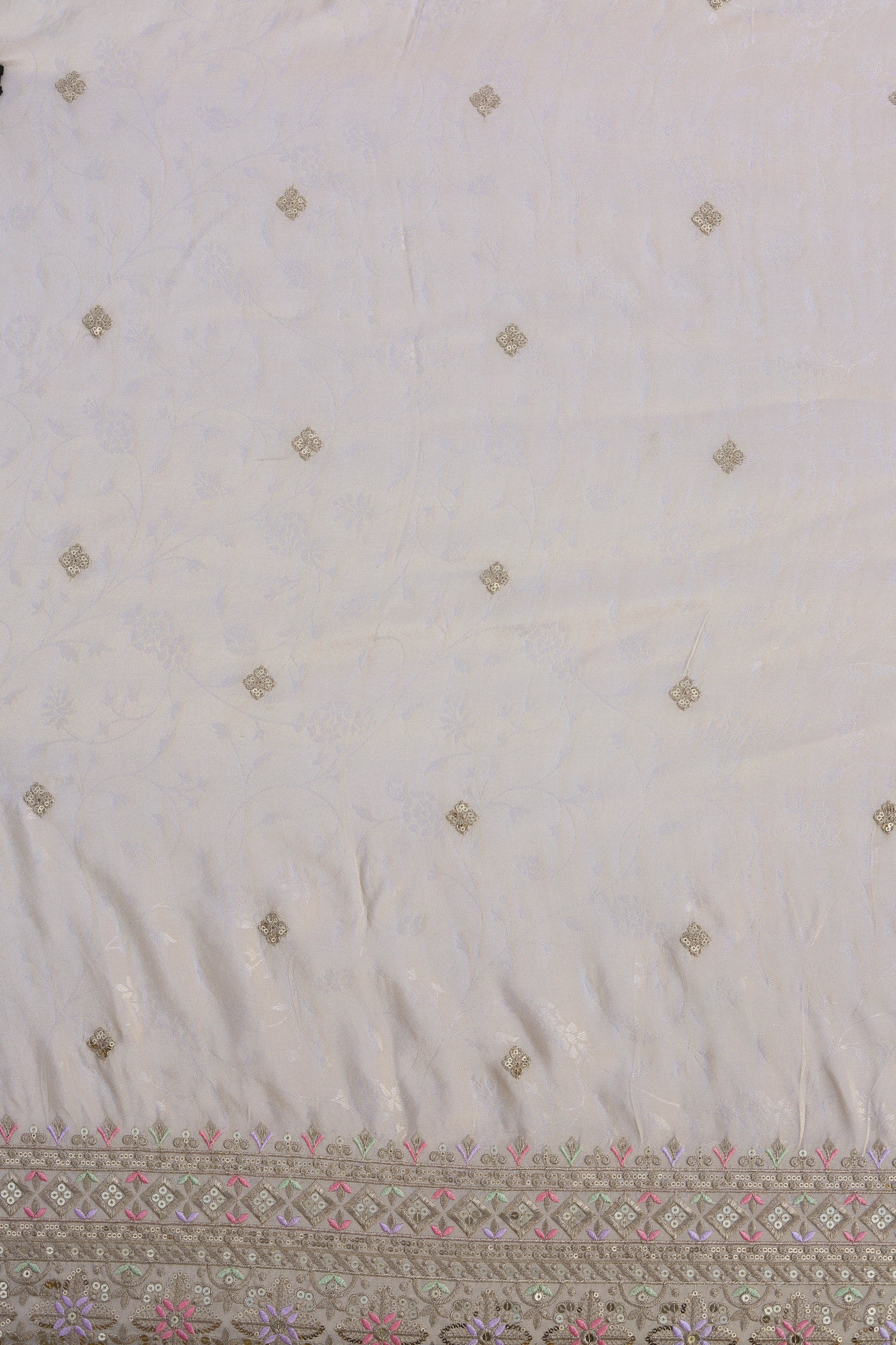 Banarasi Tissue Brocade Fabric with Floral Embroidery and Sequins