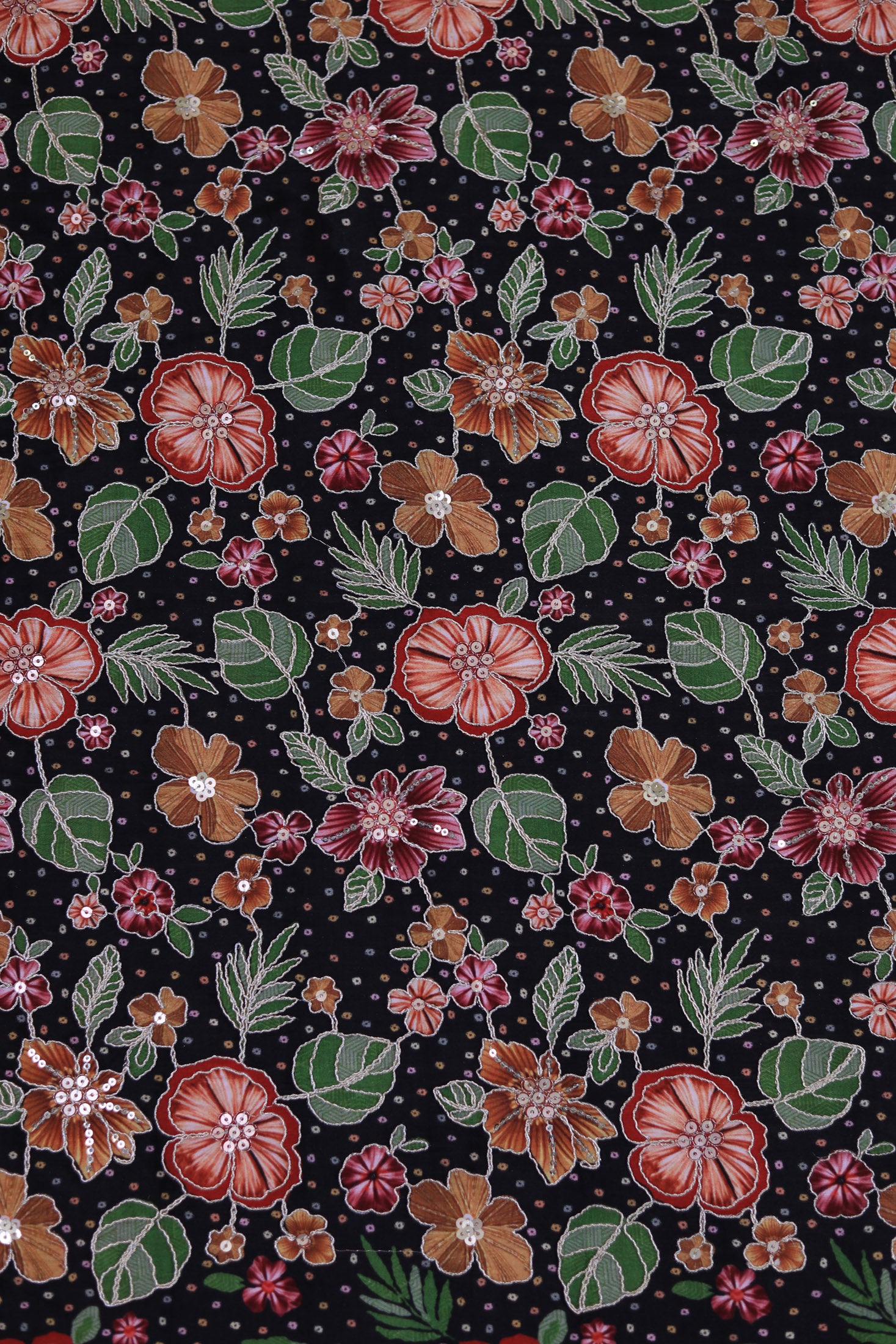 Black Floral Embroidered Crepe Fabric non-dyeable
