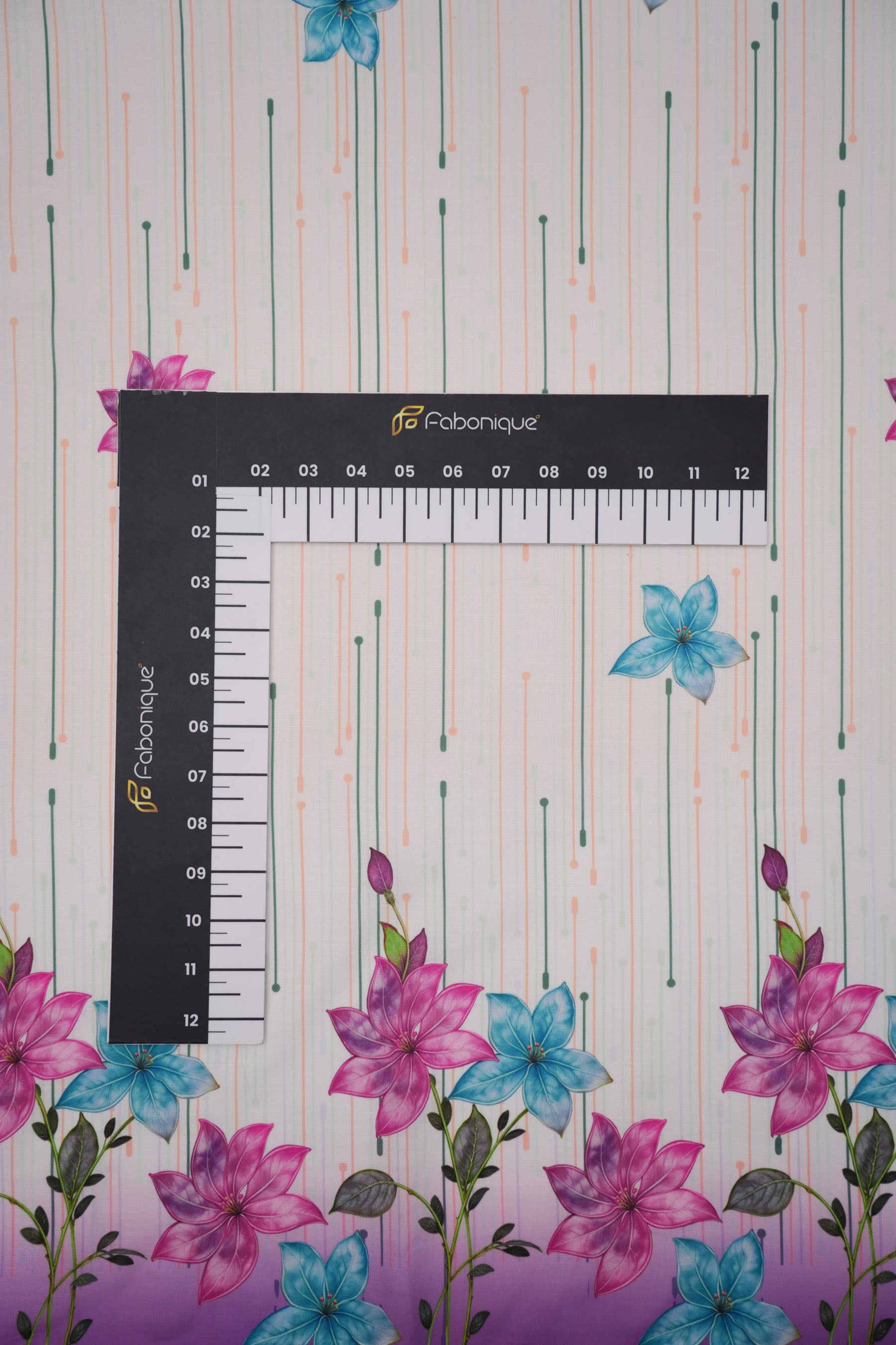 Bloomfall Purple Linen Floral Printed Fabric non-dyeable