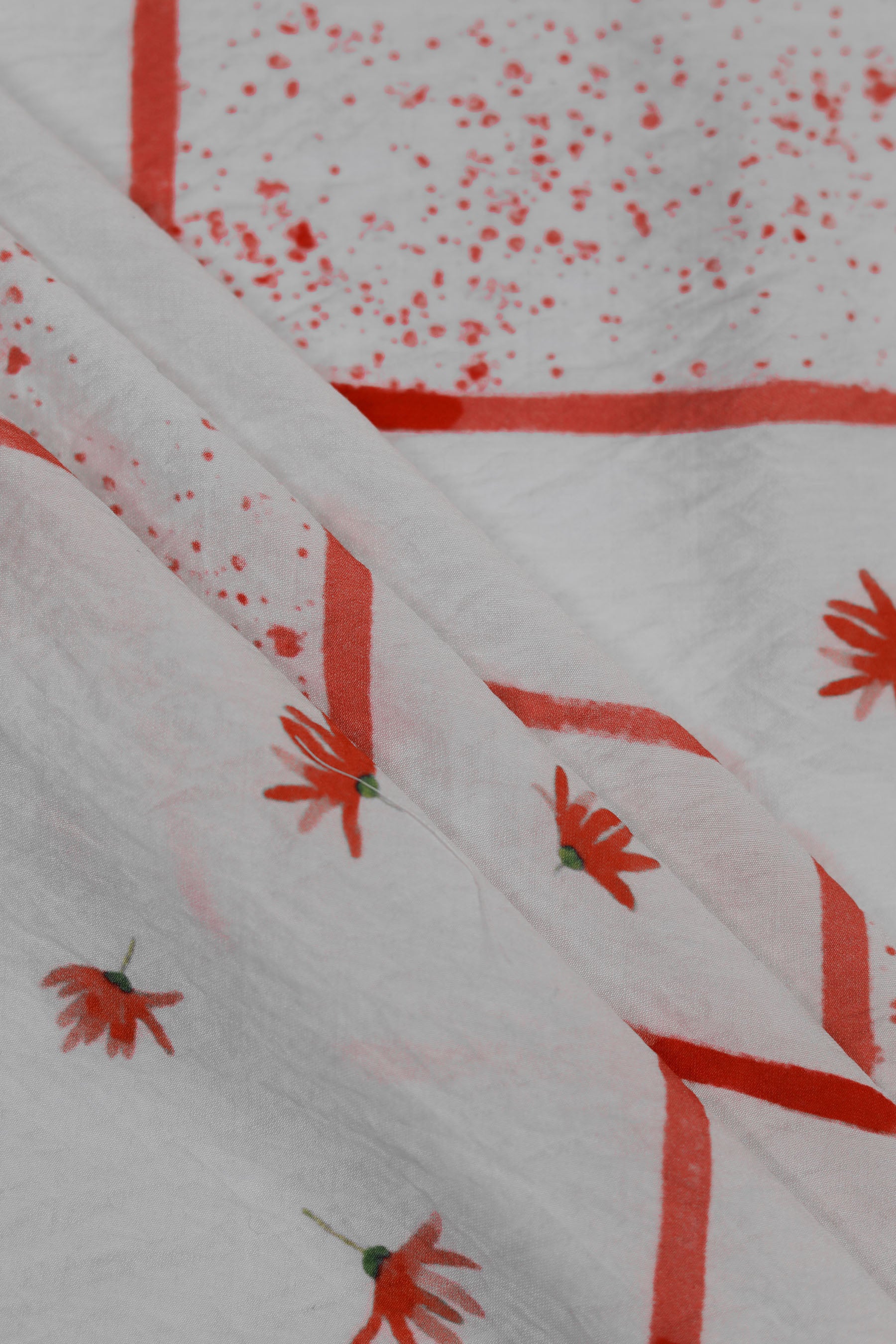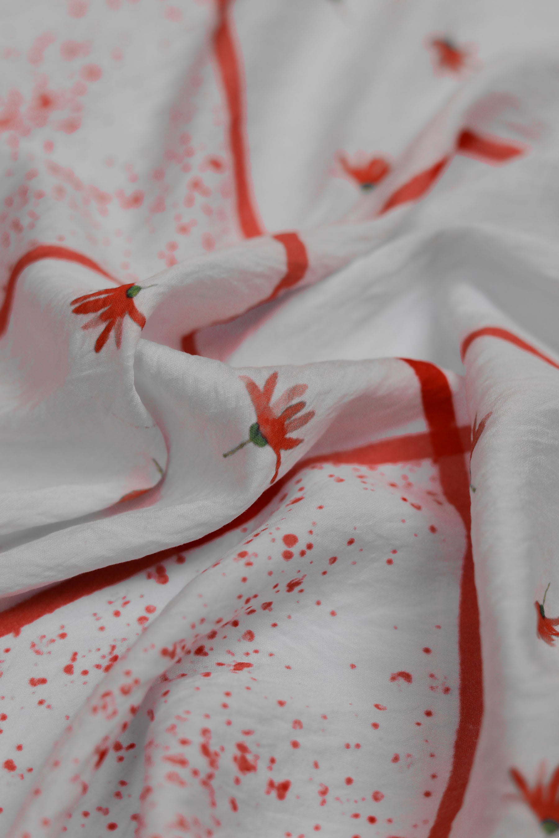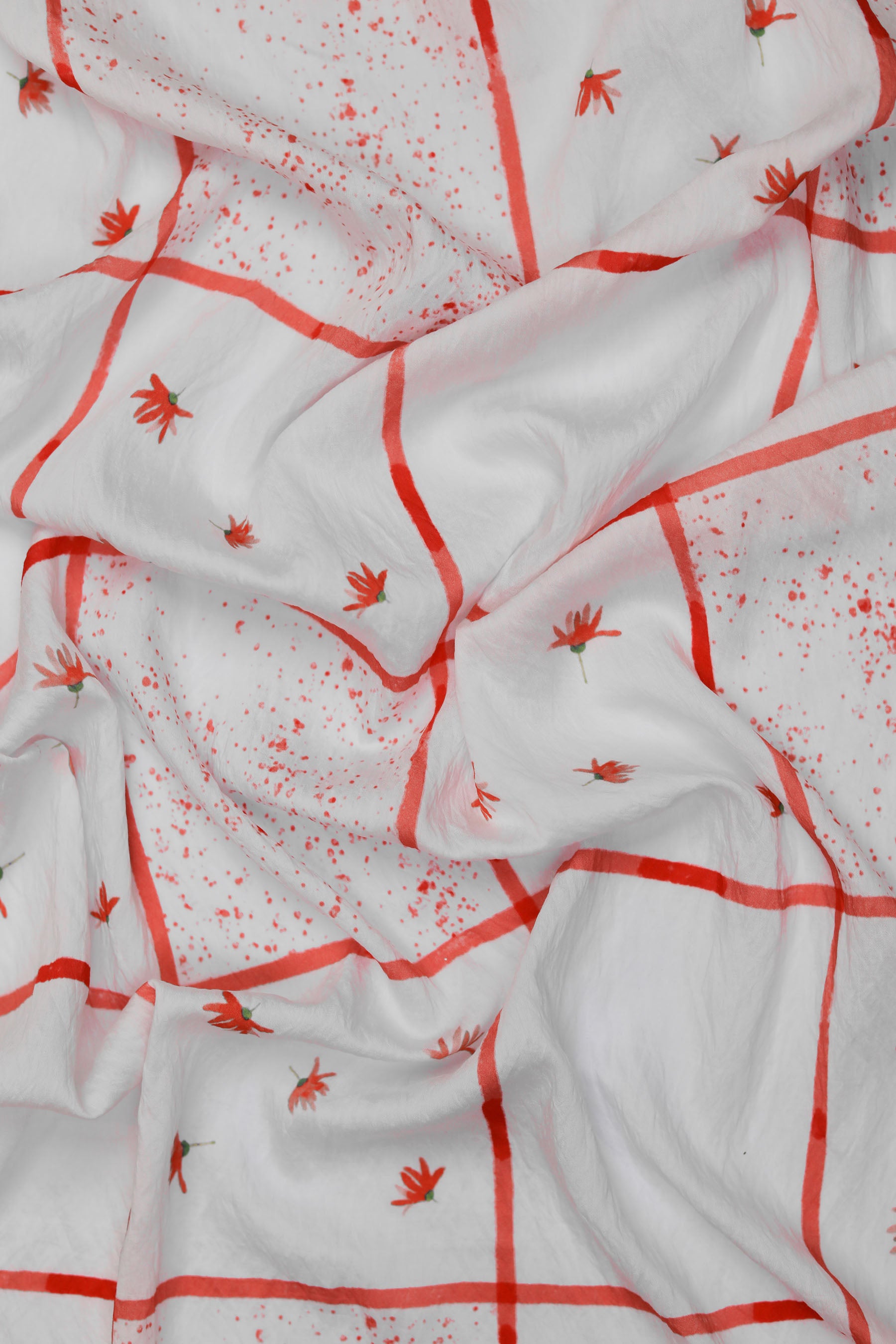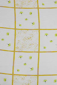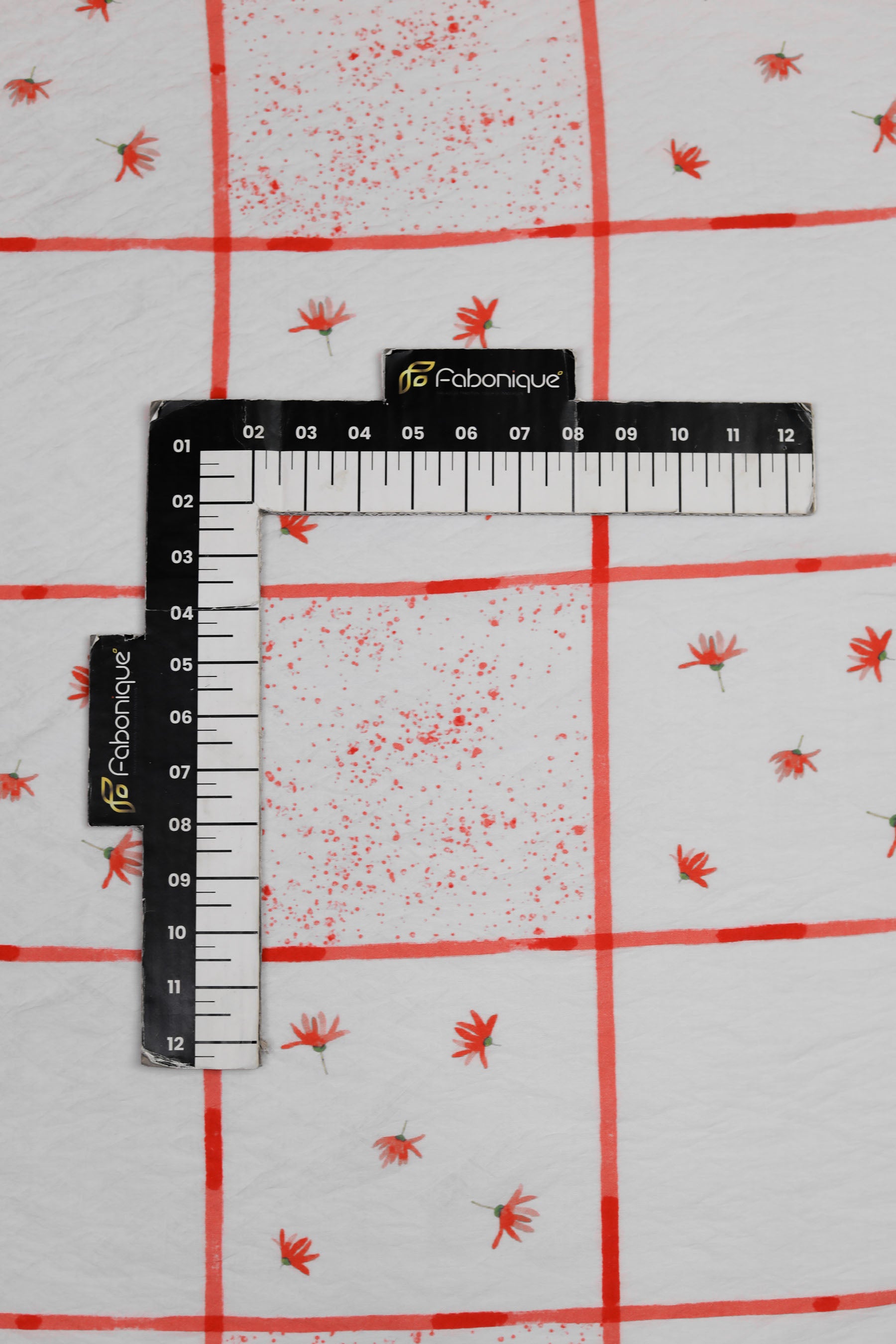 Botanic Glow White Viscose Floral Grid Fabric non-dyeable