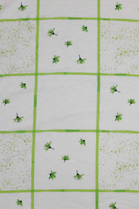 This soft and breezy fabric features a white base with subtle lime green grid lines and delicate green floral sprigs, giving it a light and refreshing look. The minimalist pattern and fresh colors make it versatile for everyday elegance and modern summer wear.Composed of 85% pure viscose and 15% nylon, this fabric combines the luxurious drape and breathability of viscose with the durability and slight stretch of nylon. It feels ultra-soft on the skin, making it perfect for long hours of wear in any climate.