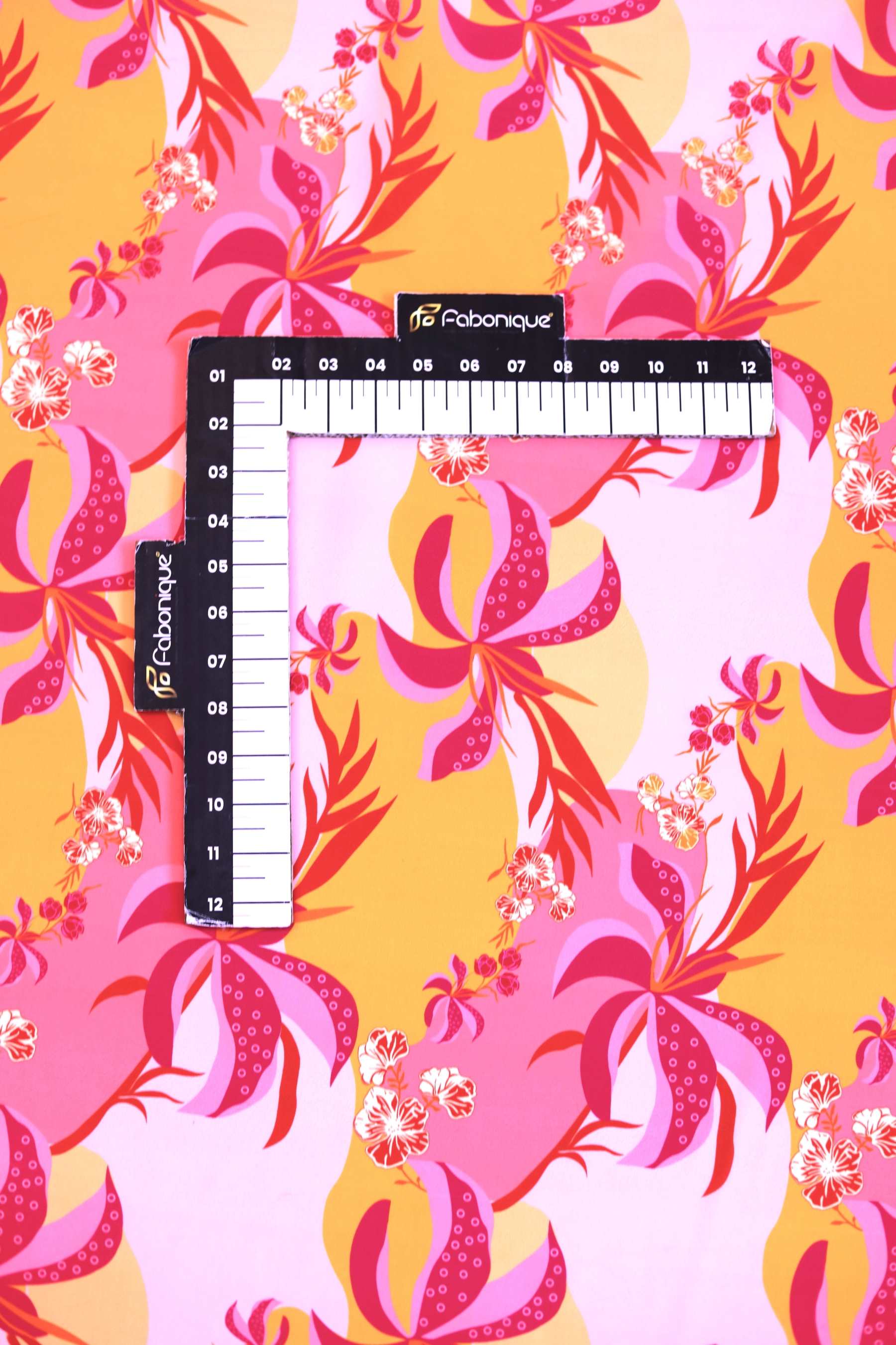 Coral Bloomscape French Crepe Fabric non-dyeable