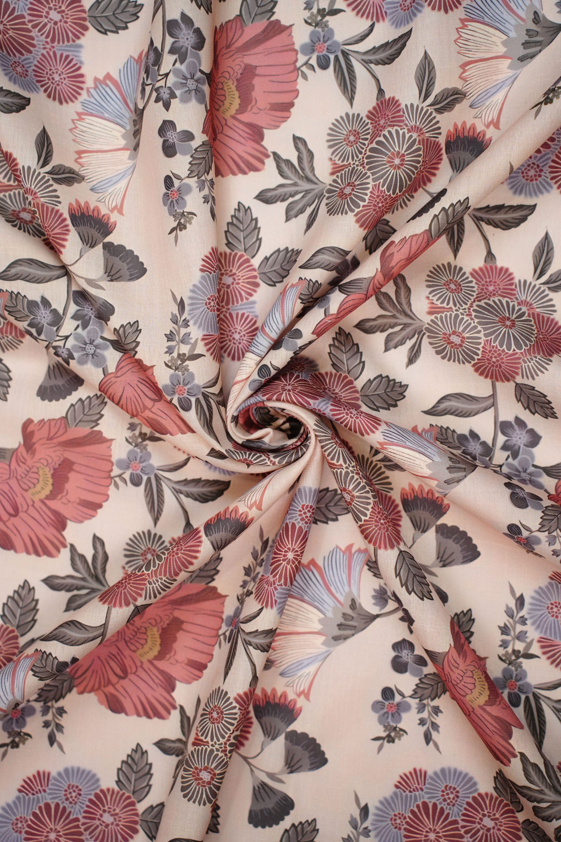 Dusky Charm Linen Floral Printed Fabric