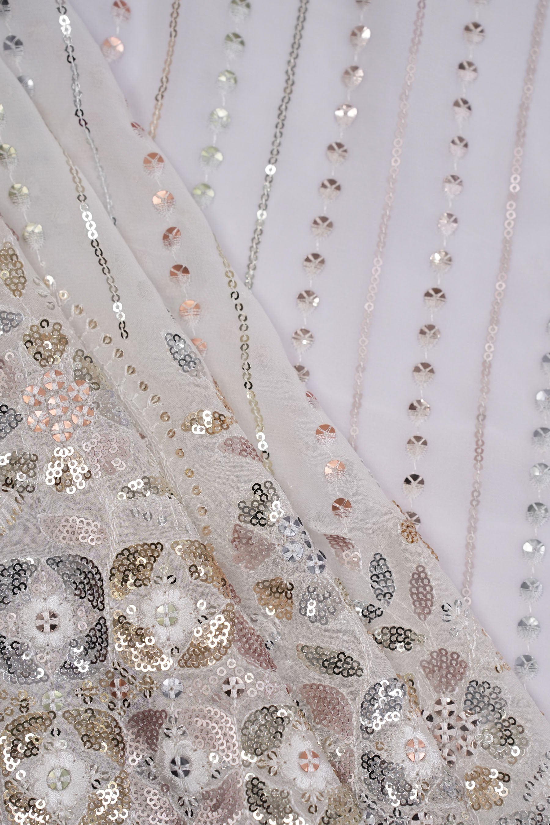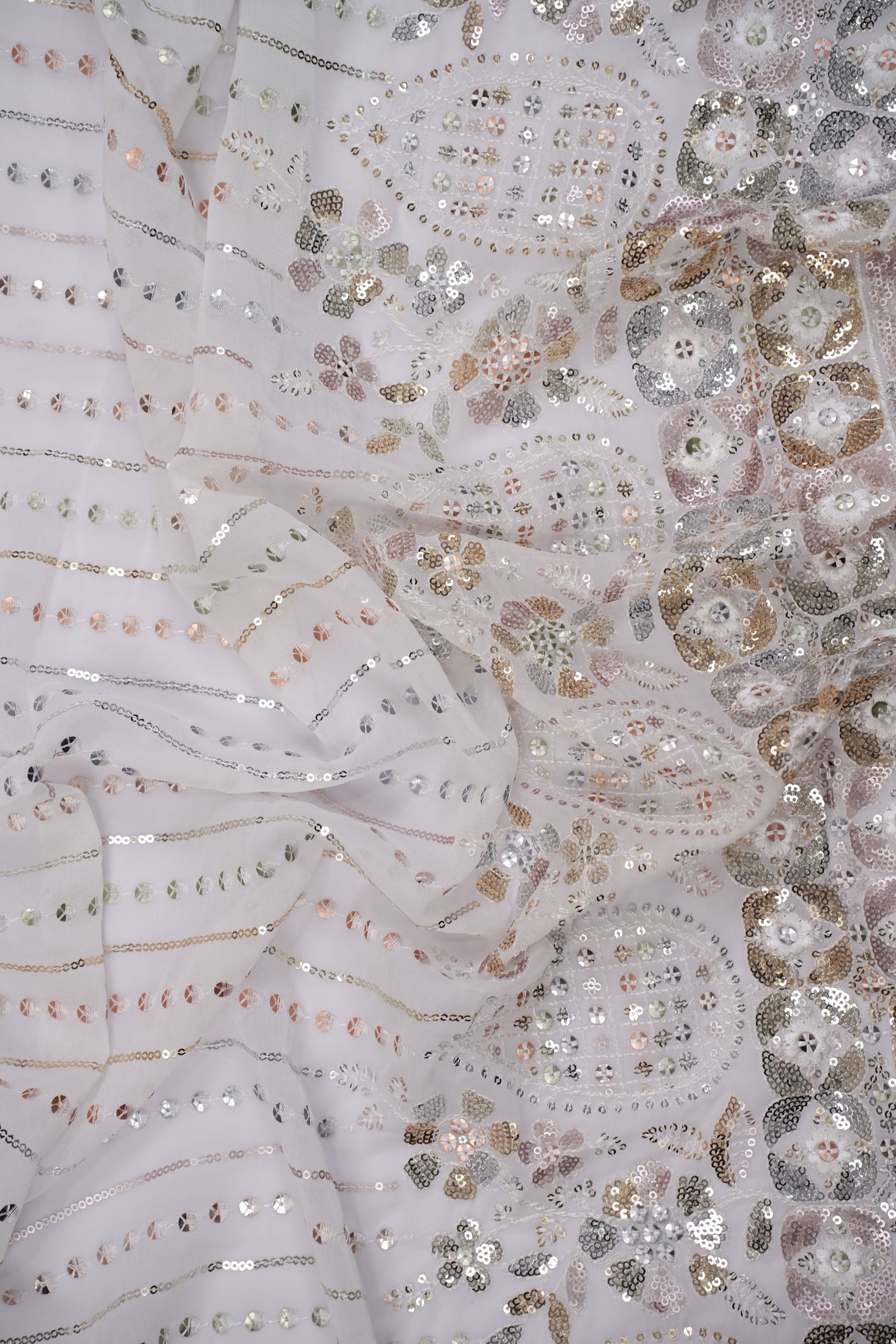 Eternal Blossom Drapes Sequin Viscose Georgette Fabric dyeable