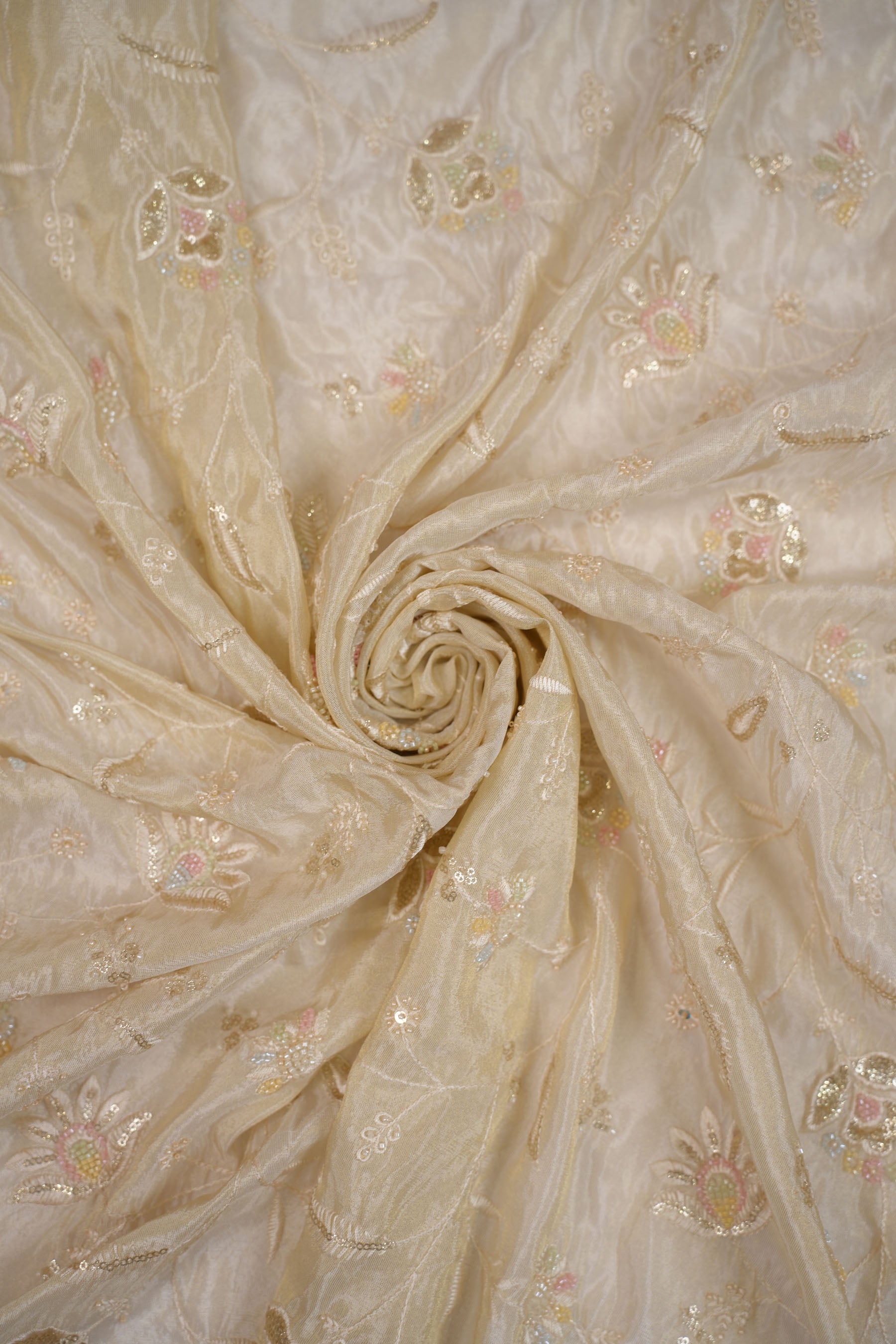 Ethereal Petal Pastel Embroidery Tissue Fabric with Sequins dyeable