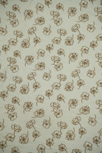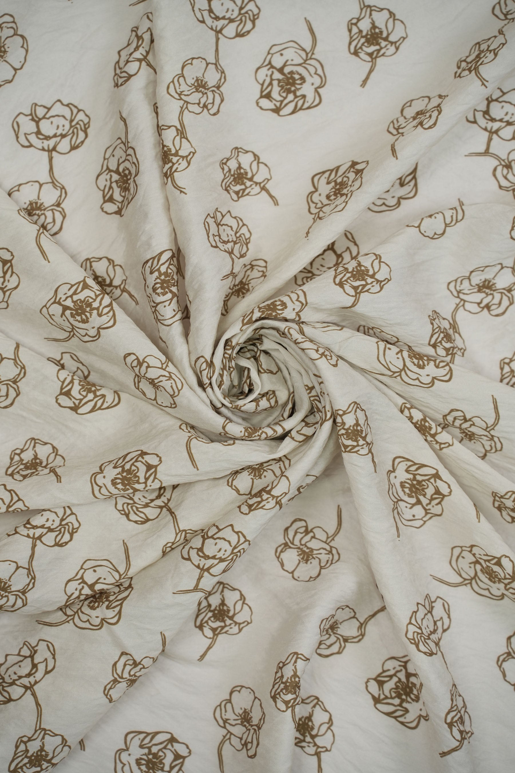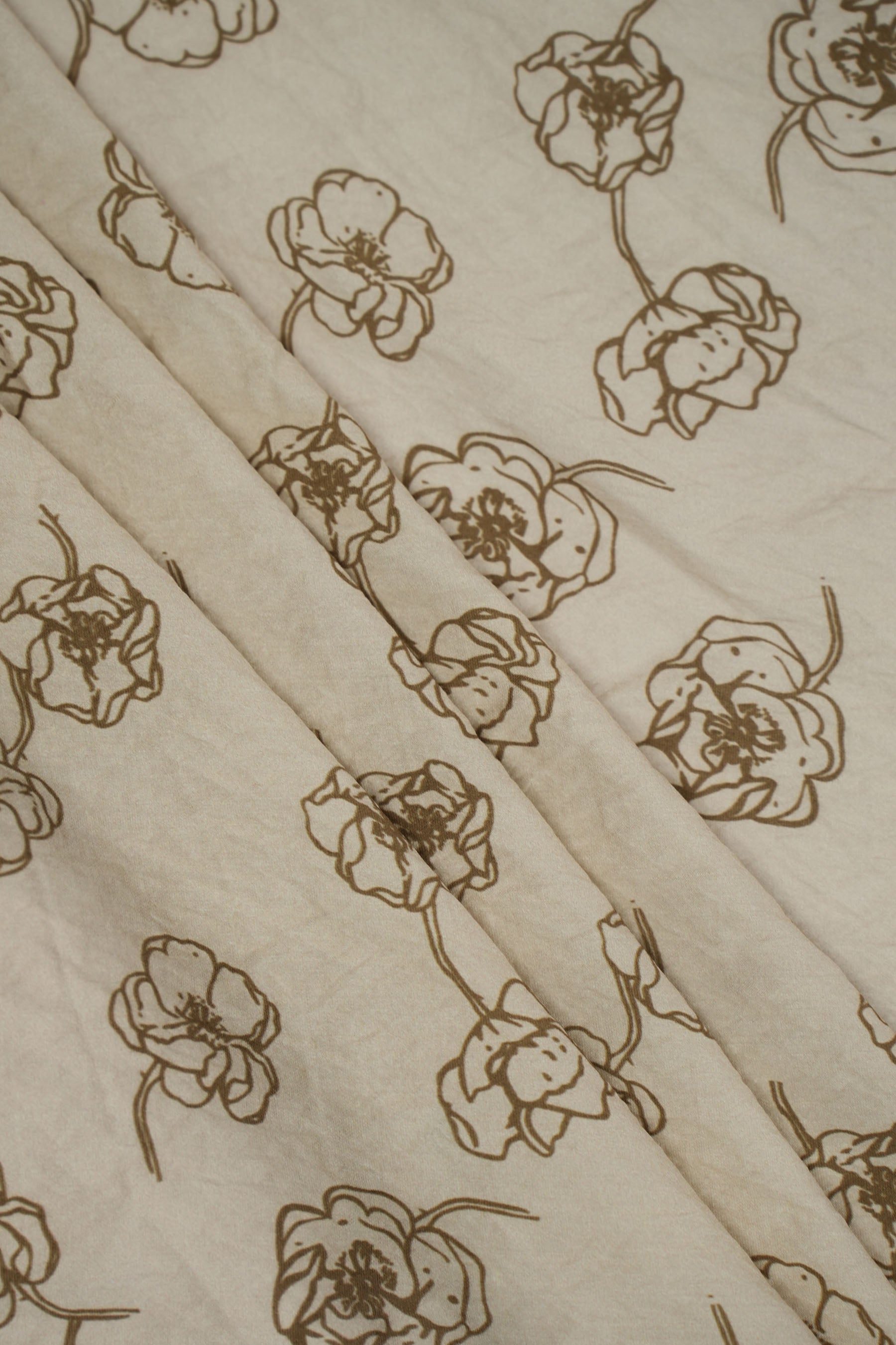 This fabric showcases a deferent color base adorned with delicate golden-brown floral sketches, exuding an elegant and timeless appeal. The understated floral pattern is both modern and versatile, making it a perfect choice for contemporary and ethnic wear alike. Made from 85% pure viscose and 15% nylon, it offers exceptional softness, fluid drape, and a subtle sheen for a luxurious look.