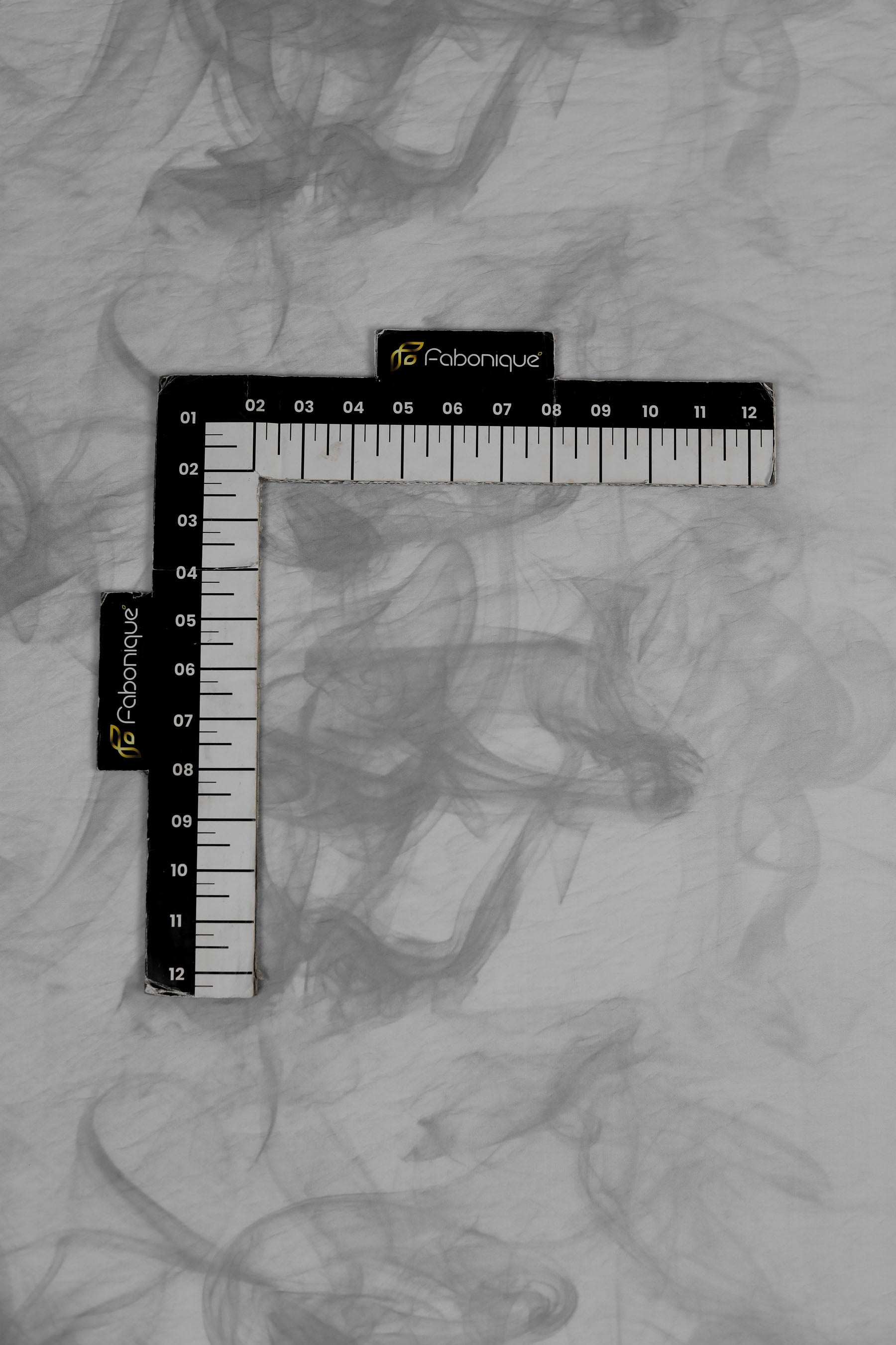 This fabric features a subtle gradient smoke-effect design with artistic swirls of grey and charcoal tones on a clean white base. Its abstract and airy pattern evokes sophistication and a contemporary edge, perfect for minimal yet impactful outfits. Crafted from 85% pure viscose and 15% nylon, it feels feather-light, buttery soft, and drapes gracefully, making it ideal for styles that demand fluidity and comfort.