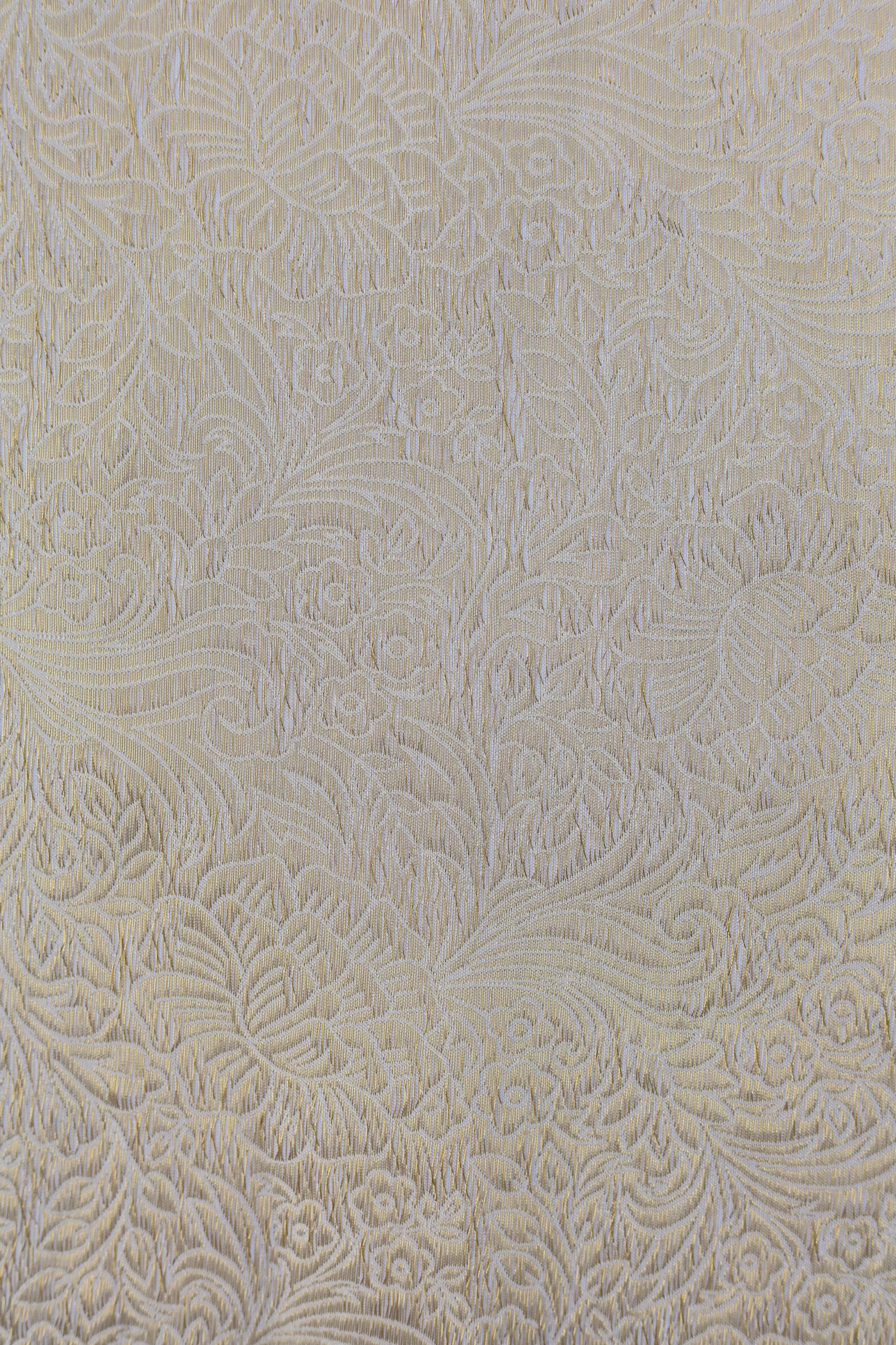 Immerse yourself in timeless sophistication with this floral embossed fabric, delicately highlighted with shimmering golden details. The intricate floral patterns add a regal charm, making it a perfect choice for creating stunning ethnic and contemporary ensembles. Ideal for sarees, lehengas, gowns, and premium decorative purposes.