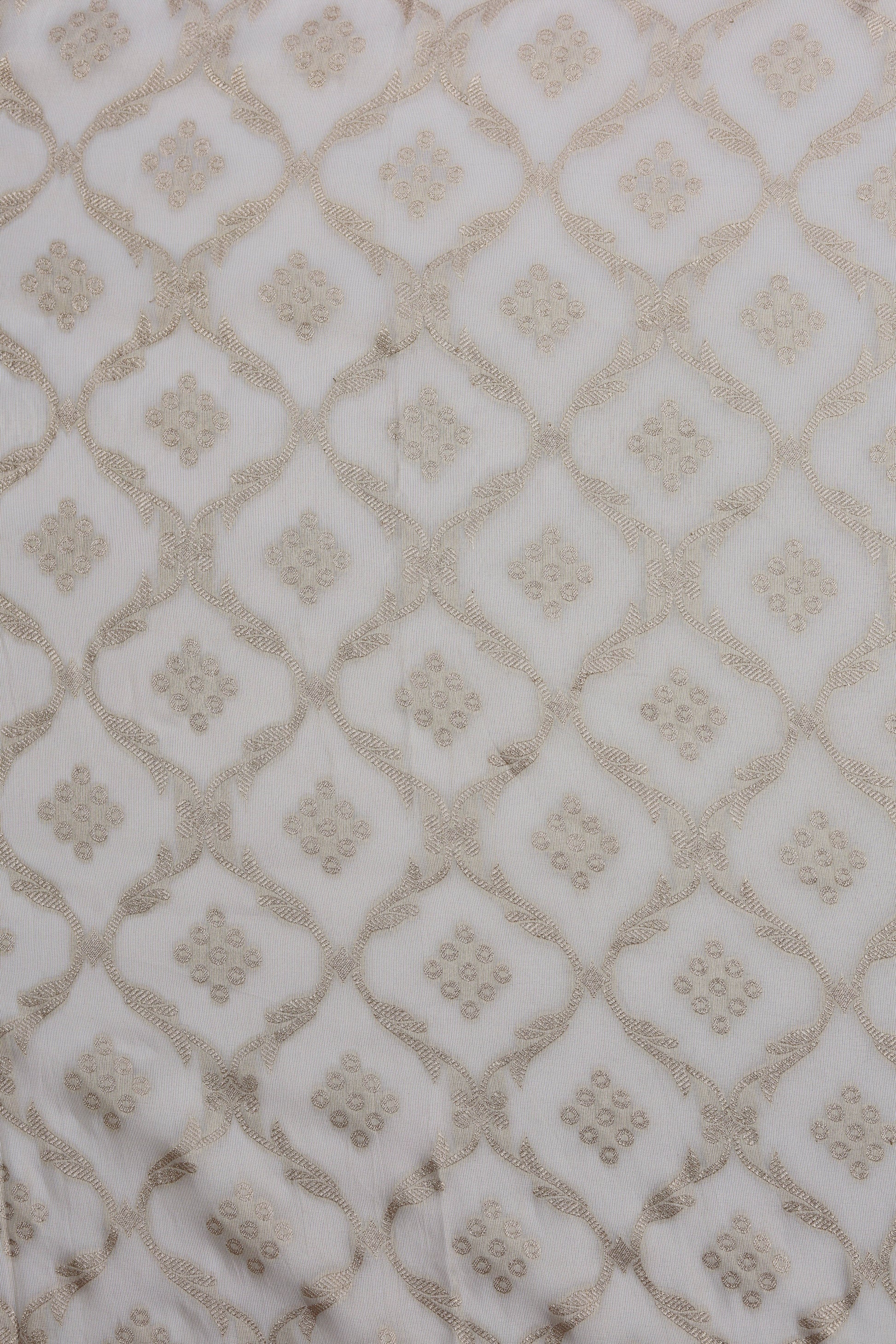 Golden Lattice Pattern Sheer Organza Fabric dyeable
