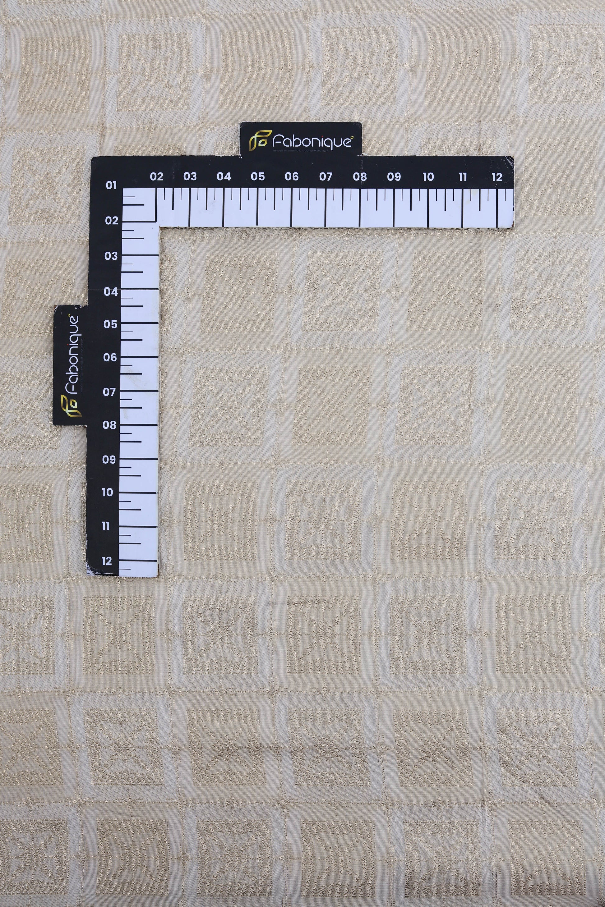 Add a regal touch to your creations with this refined golden square-patterned brocade fabric. Each square features intricate motifs, crafted with precision, exuding a sense of elegance and luxury. The subtle metallic sheen enhances its grandeur, making it perfect for ethnic and formal wear. Ideal for creating sarees, lehengas, and blouses or for enriching your home décor projects.