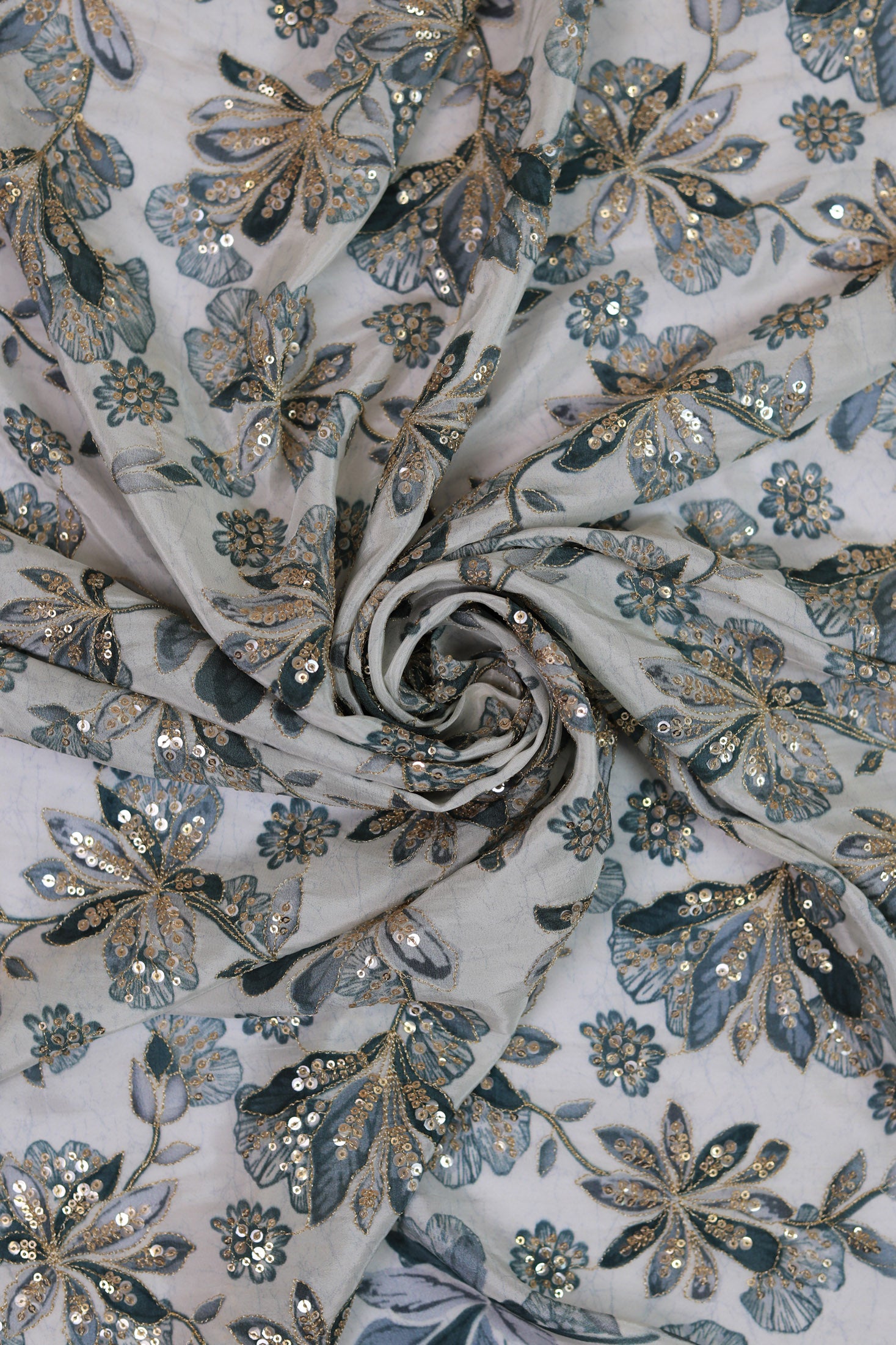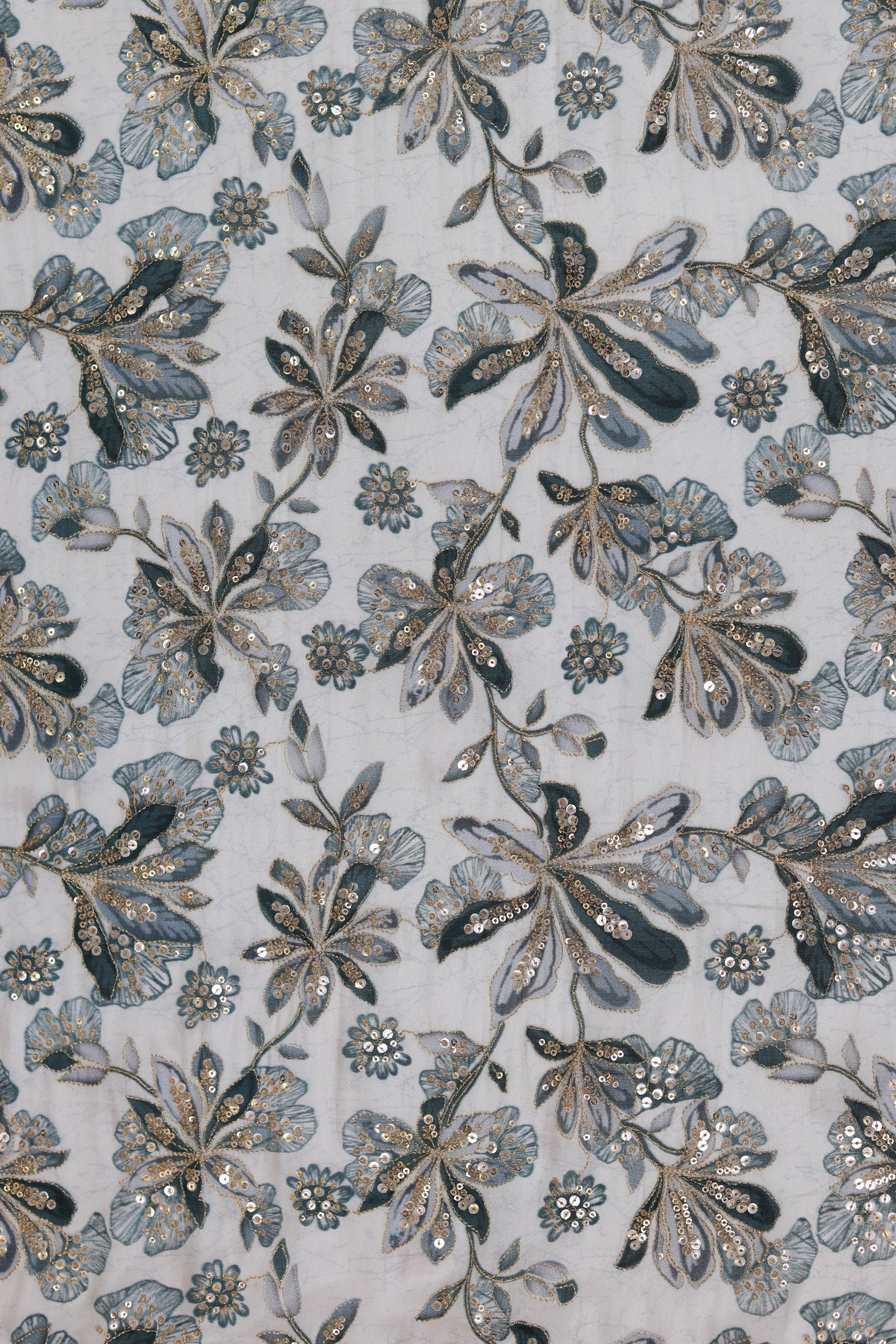 Green Mist Embroidered Floral Sequin Fabric non-dyeable