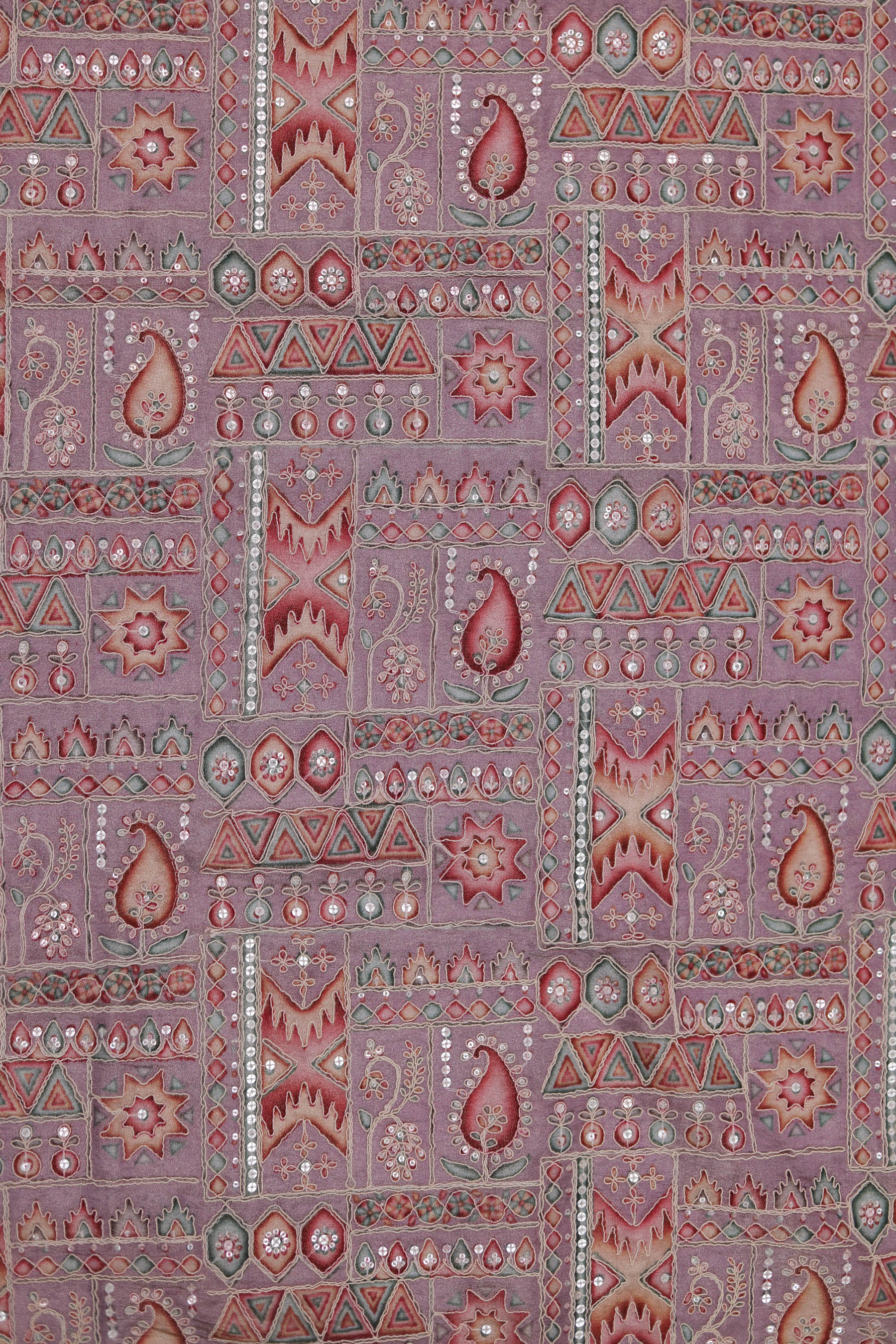 Purple Heritage Mosaic Embroidered Patchwork Fabric
