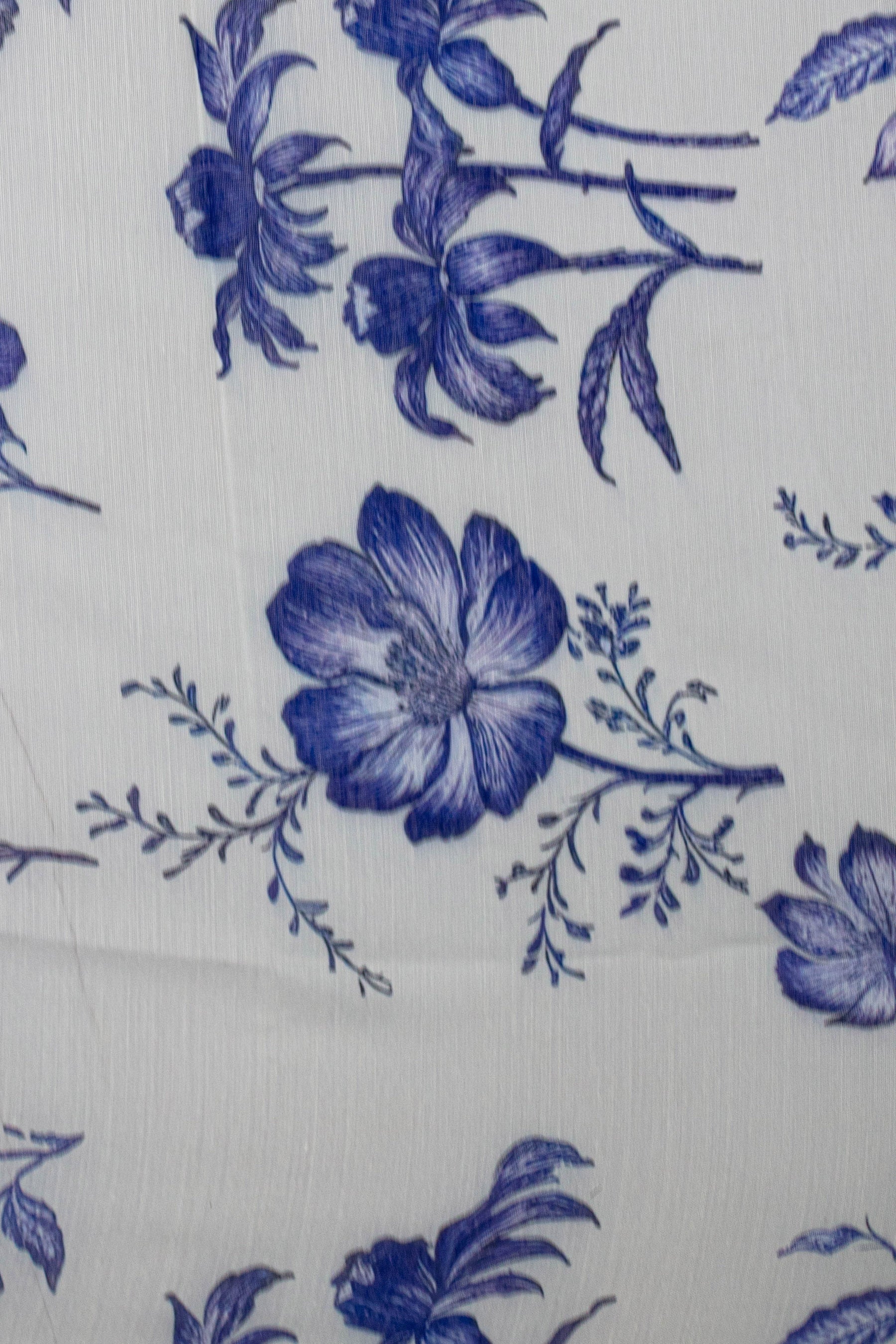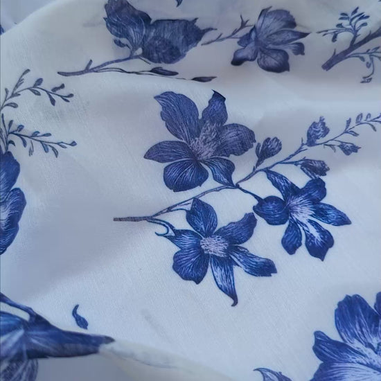 Indigo Petals Printed Chanderi Fabric non-dyeable